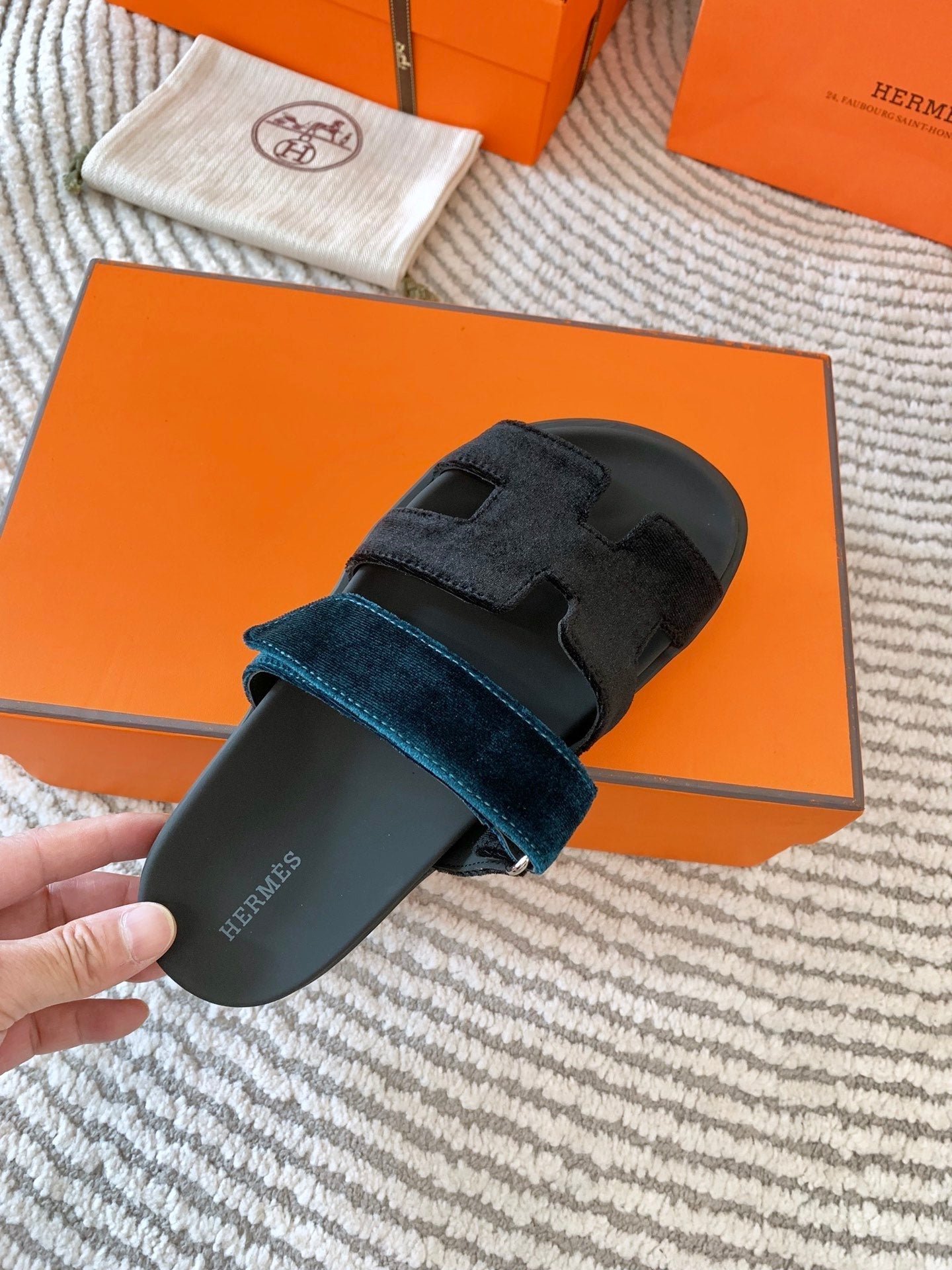HM Chypre Sandal Black Mix Duck Neck Blue Corduroy 963558