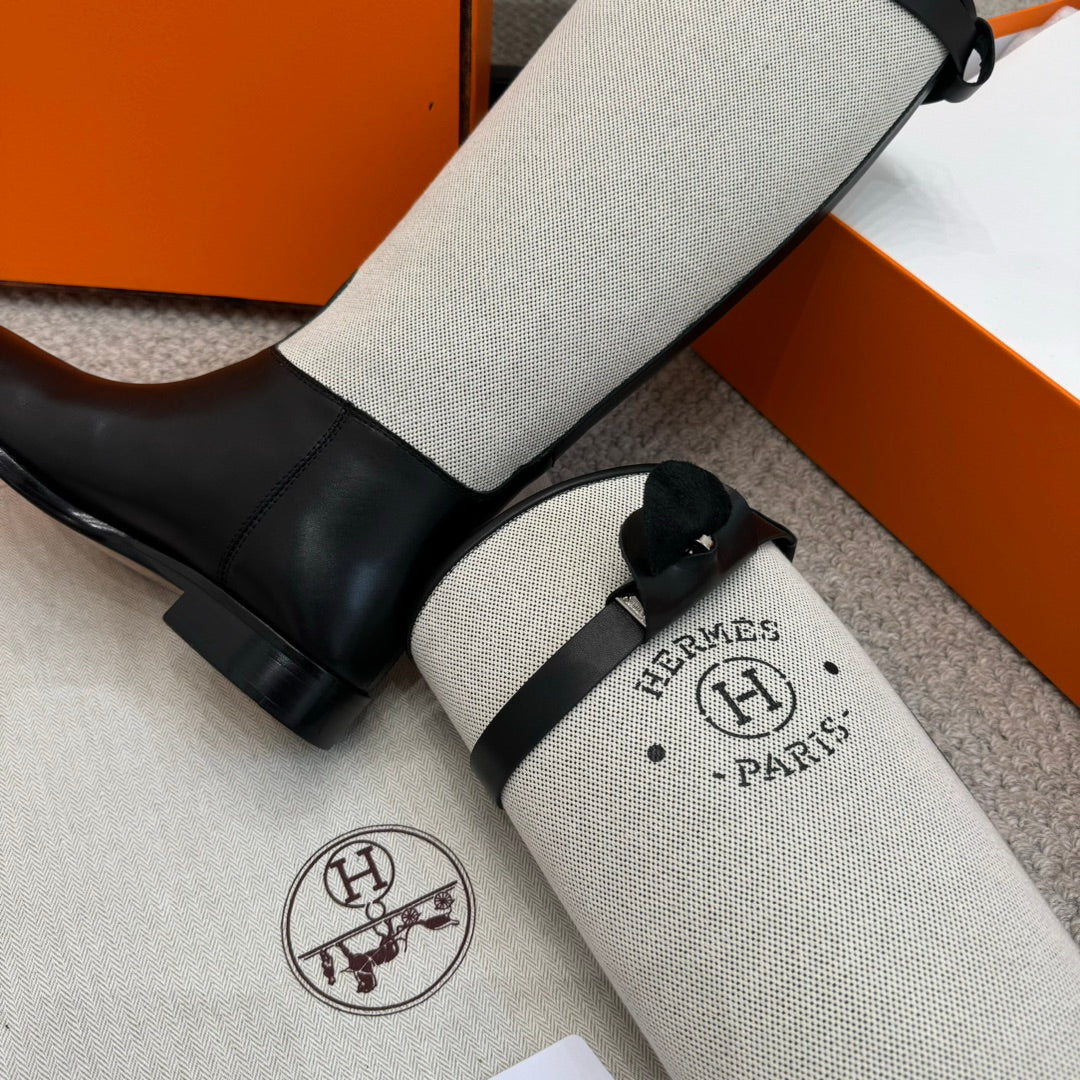 HM Jumping Boot In White Mix Black Calfskin And Burlap 973841