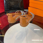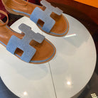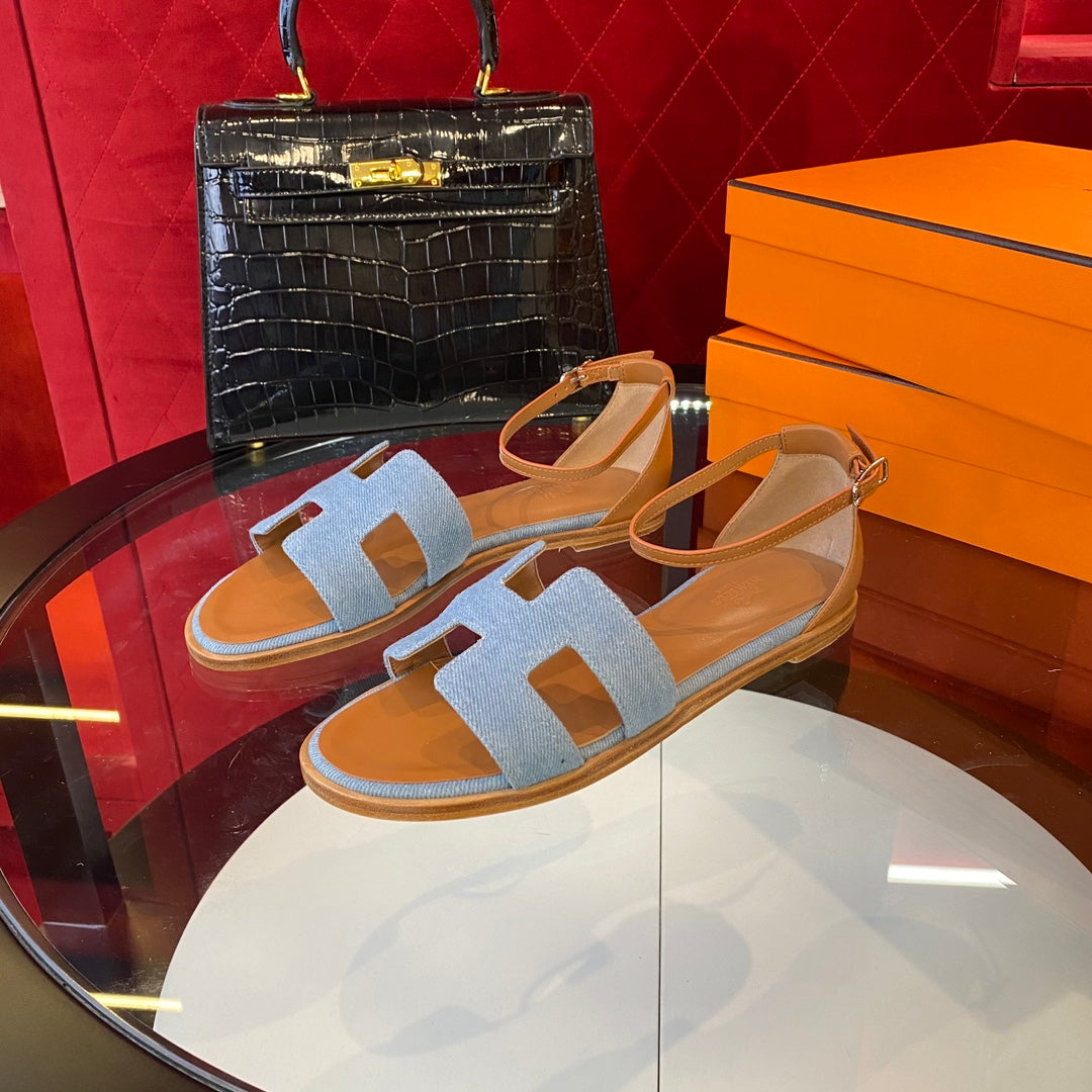 • Material: Sandal in Clafskin with straight cut edges, "H" cut-out detail and thin ankle strap.