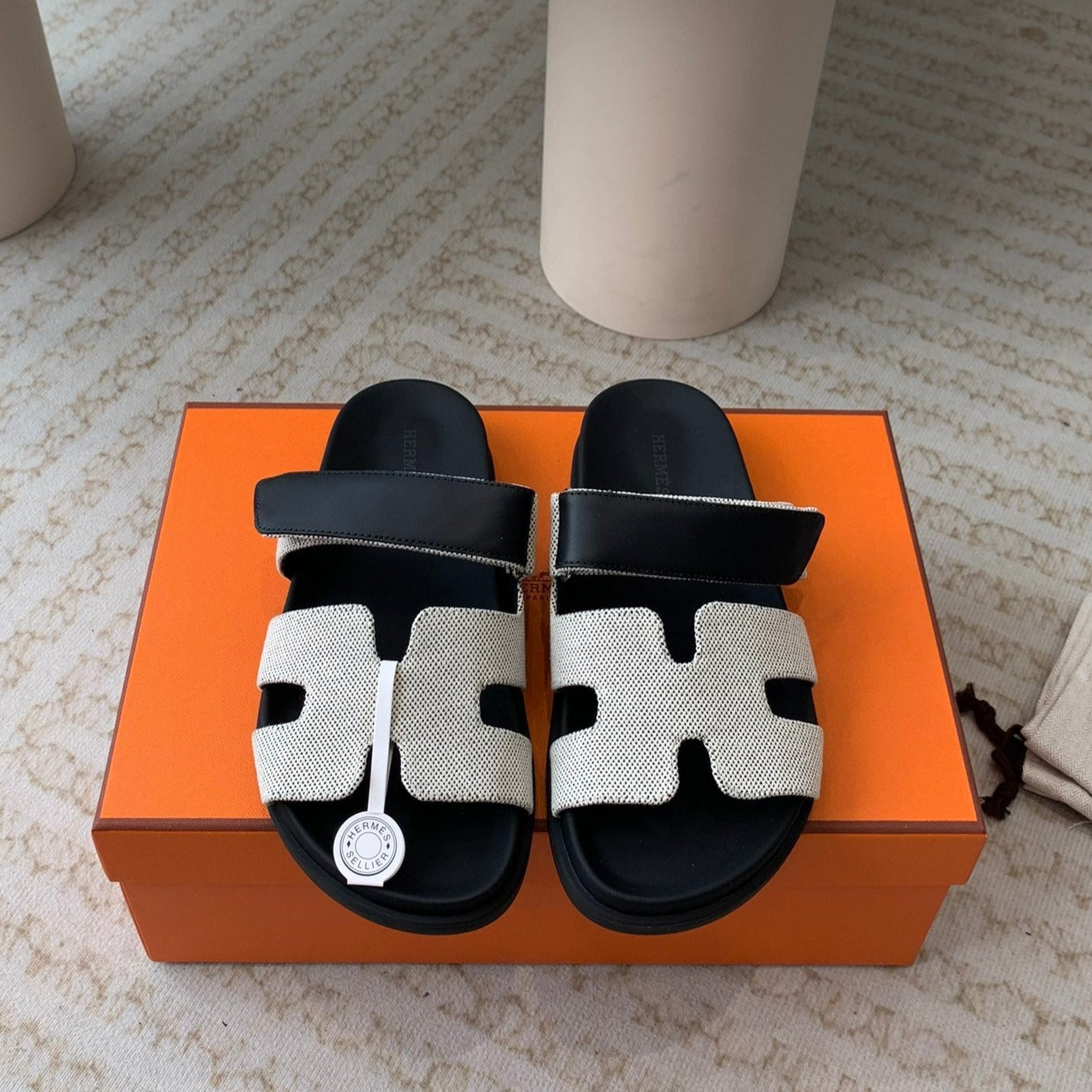 chypre sandal pinkish beige suede calfskin white thread embroidered