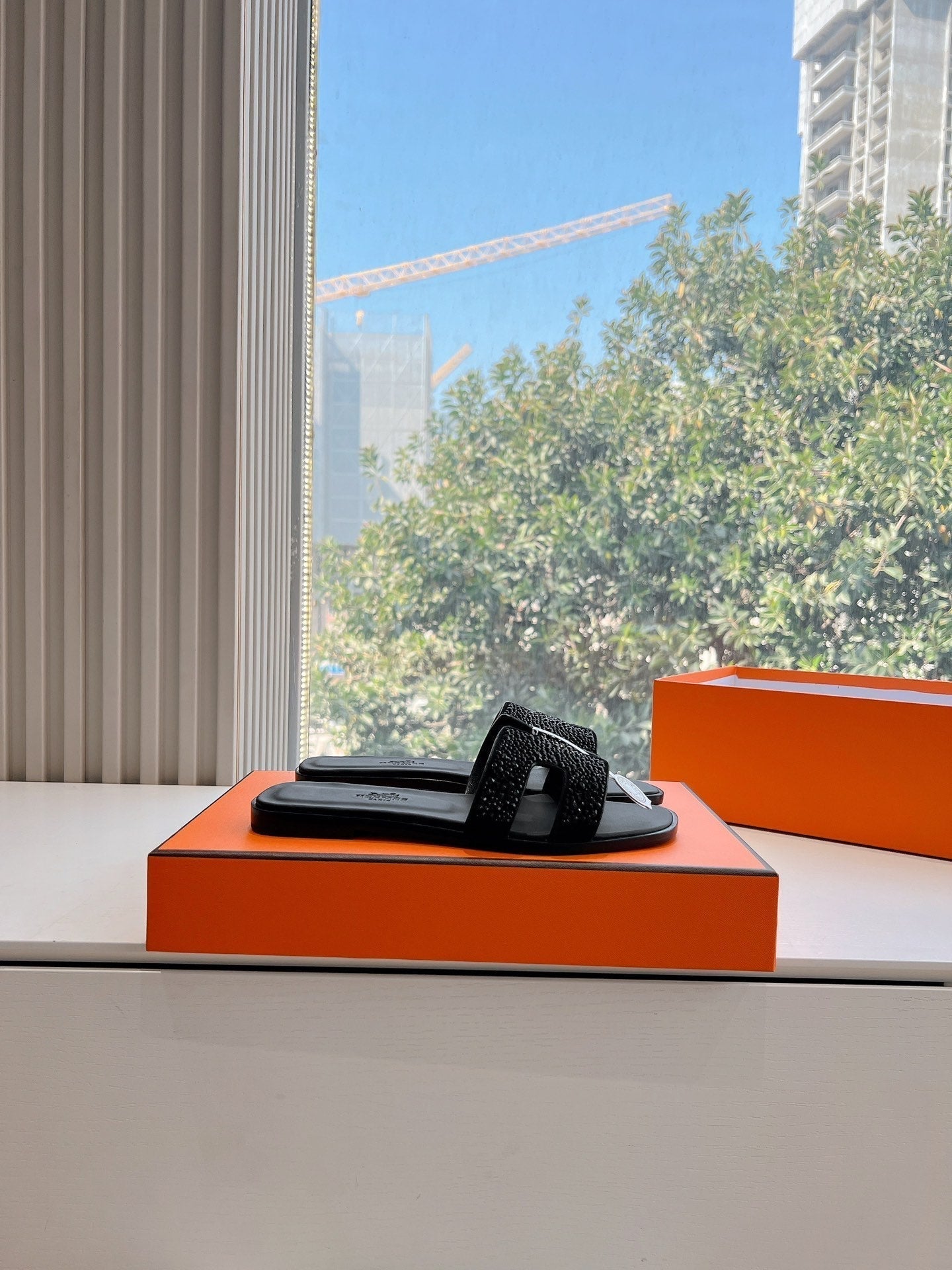 HM 25 Oran Sandal Black Copper Metalic Calfskin