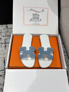 HM 25 Oran Sandal White Calfskin Blue Denim