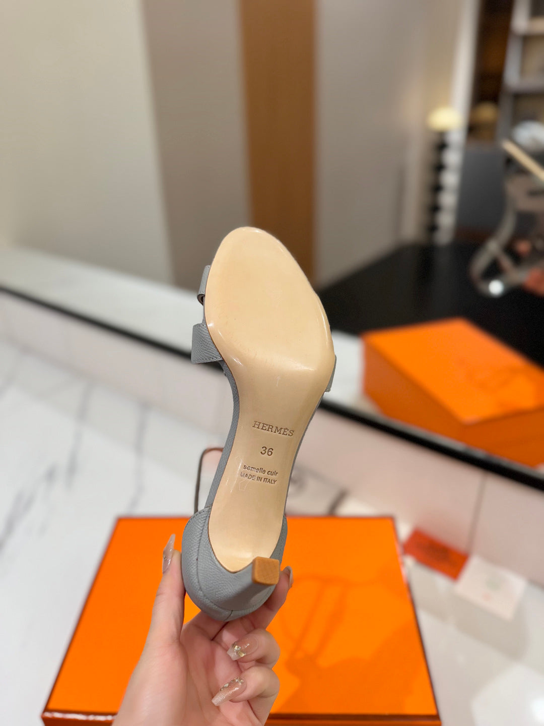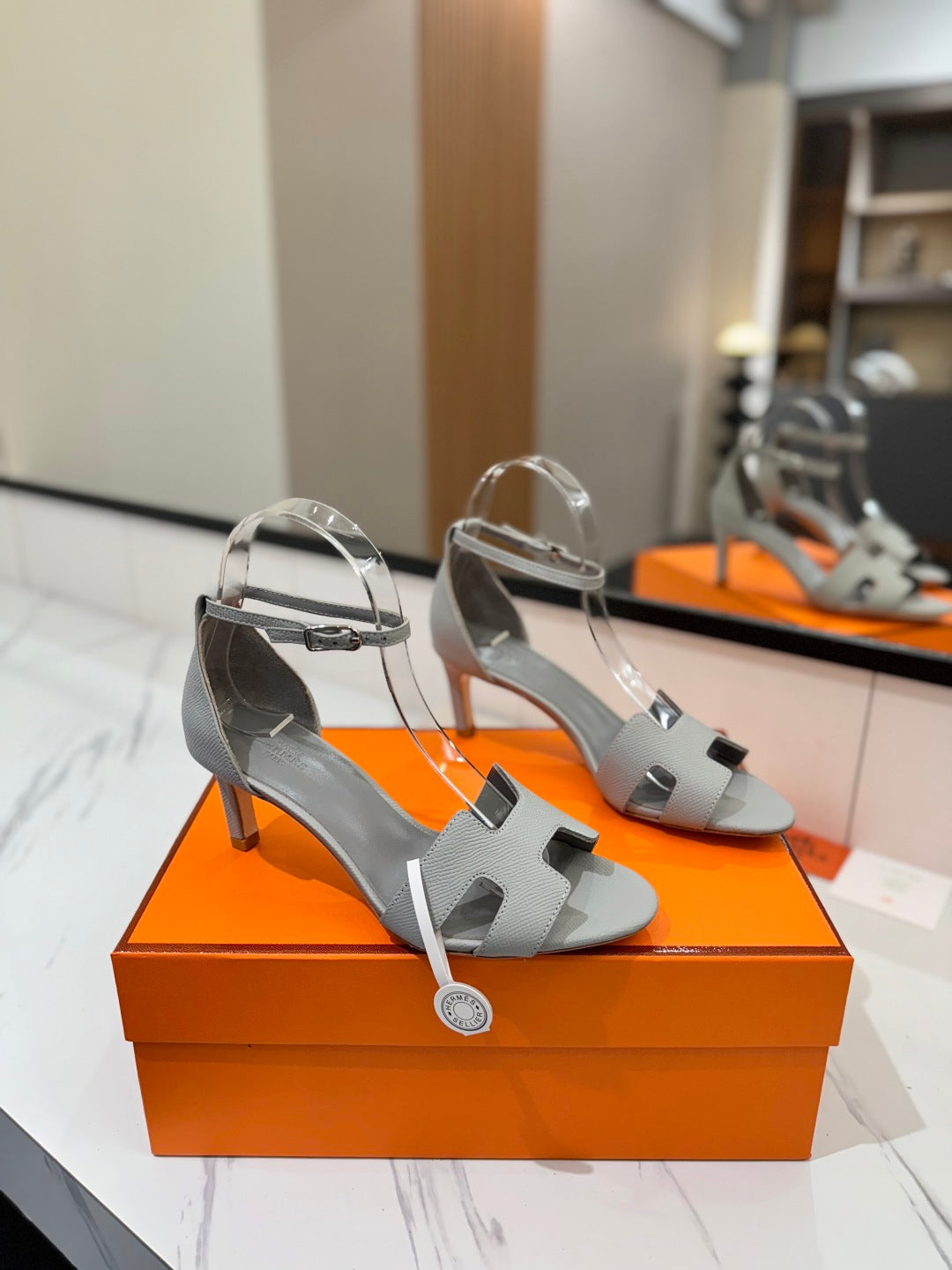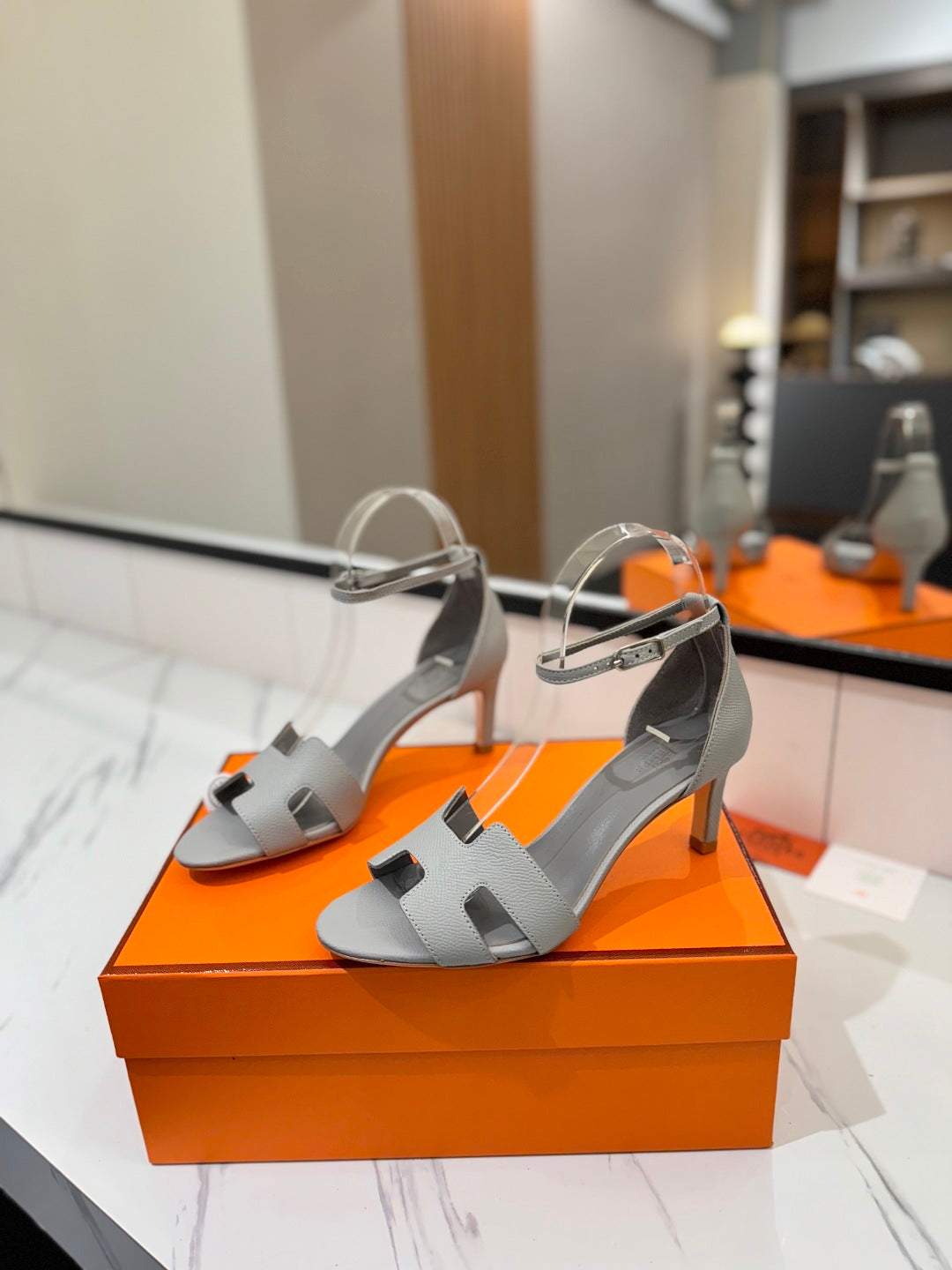 HM Joy 65mm Heeled Sandals Gray Cowhide 294912