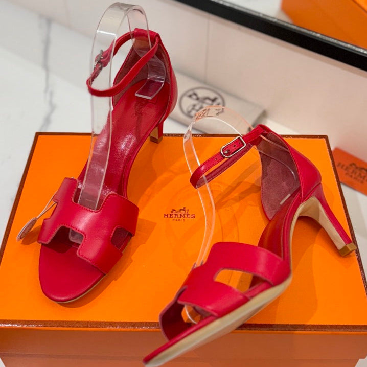 HM Joy 65mm Heeled Sandals Red Flat Cowhide 294928