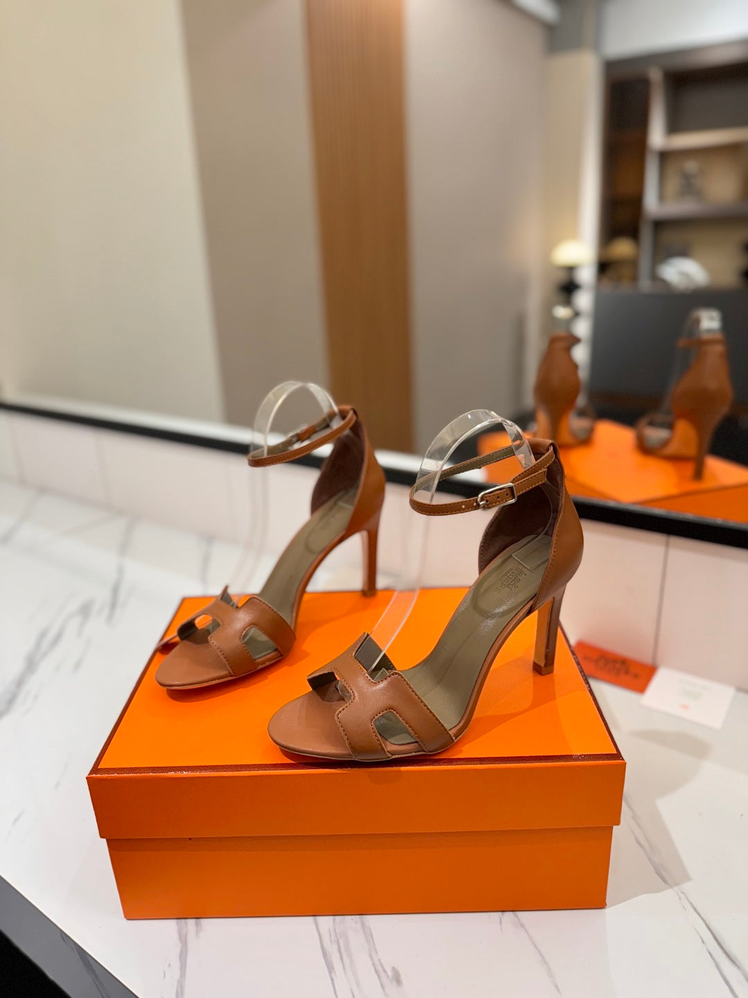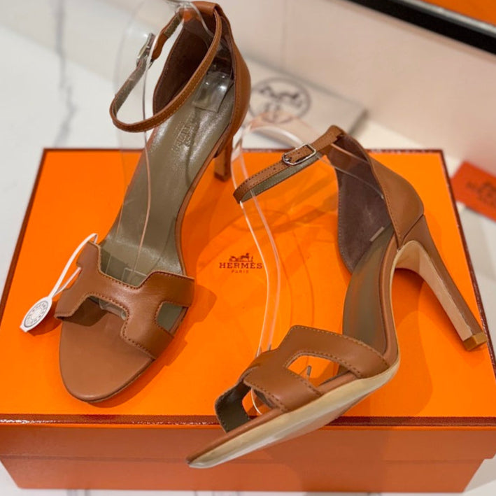 HM Joy 90mm Heeled Sandals Brown Flat Cowhide 294921