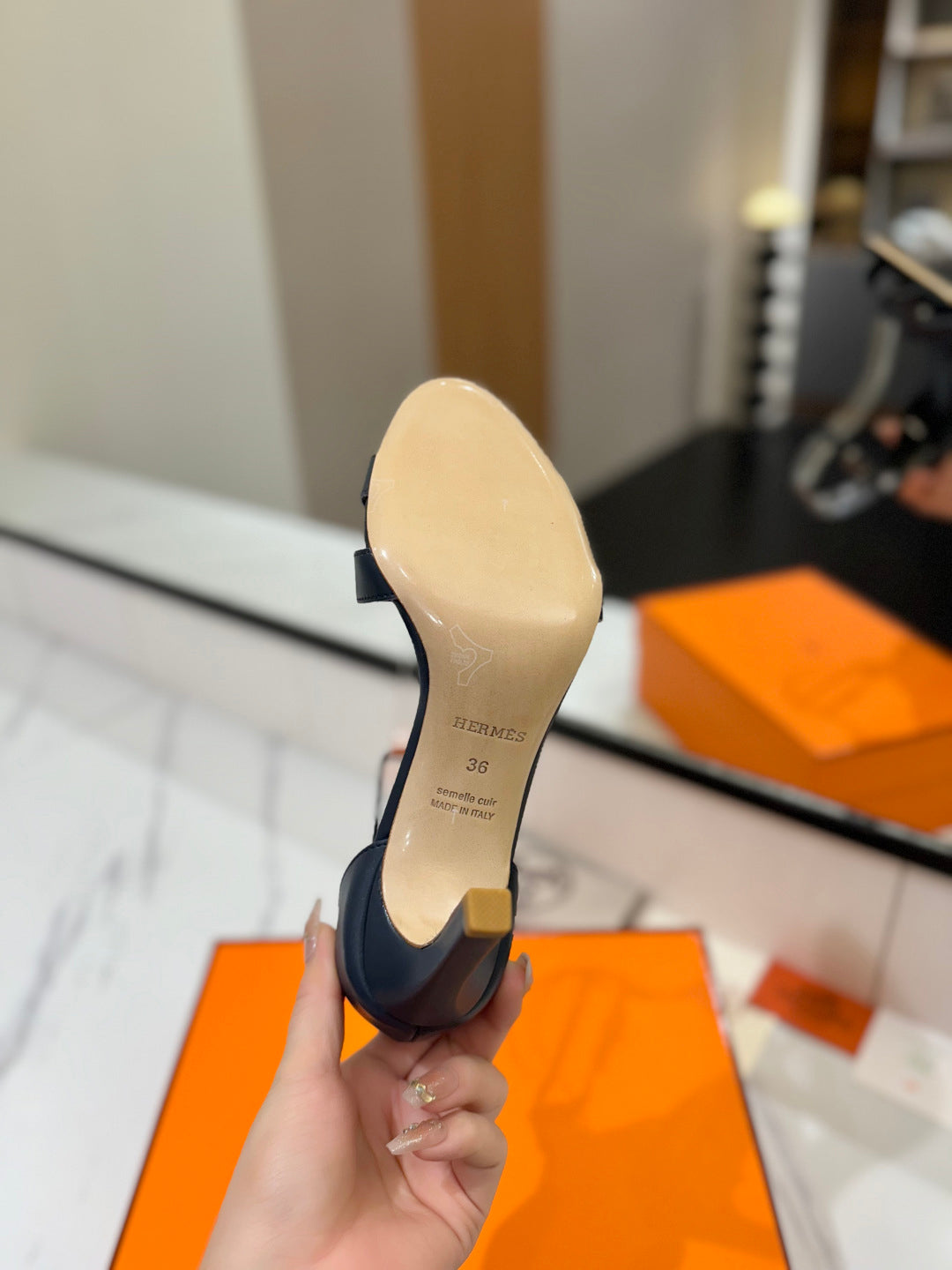 HM Joy 90mm Heeled Sandals Navy Blue Flat Cowhide 294923