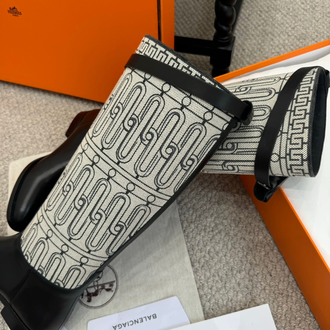 HM Jumping Boot In Black Mix White Calfskin And Mesh Fabric 973843