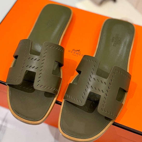 HM Oran Sandal Army Green Perforate Cowhide 294875