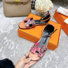 • Material: Sandal in Clafskin with straight cut edges, "H" cut-out detail and thin ankle strap.