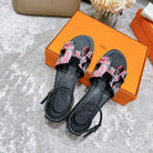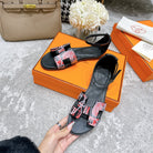 • Material: Sandal in Clafskin with straight cut edges, "H" cut-out detail and thin ankle strap.