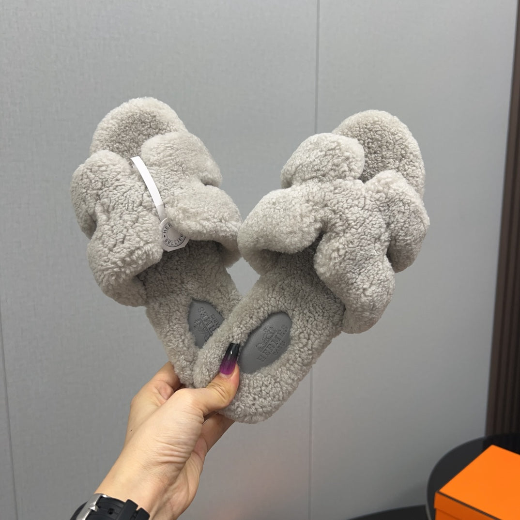 HM Chypre Sandal In Light Beige Lamb Wool 984185