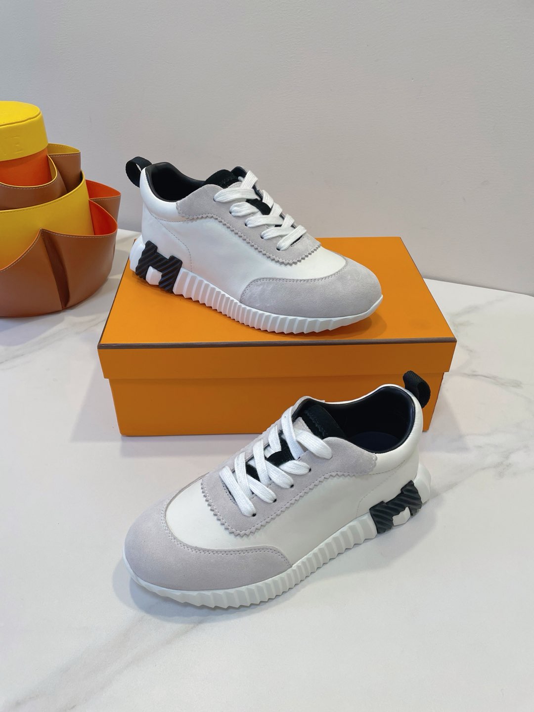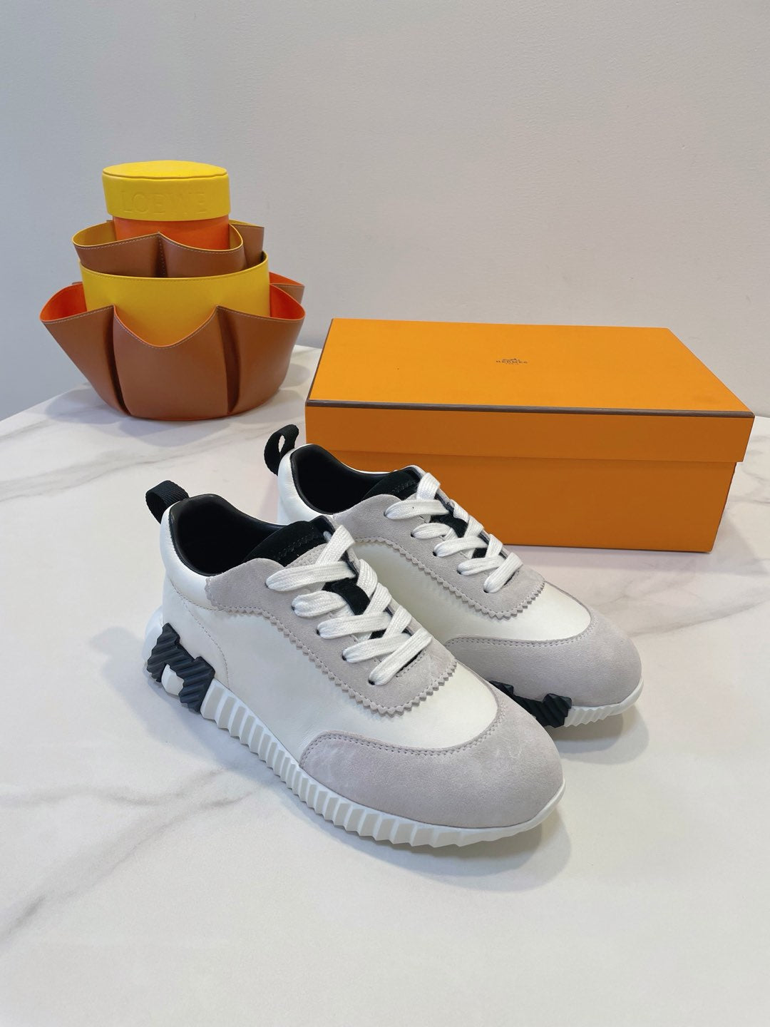 HM Bouncing sneaker Beige Grey mix White Calfskin and Suede 212288