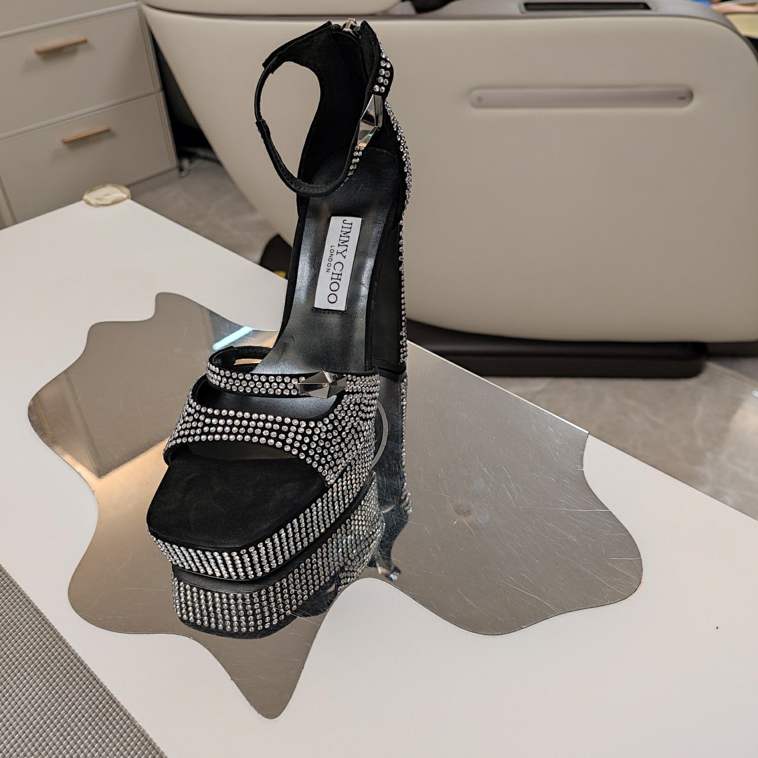 Jimmy 25 Platform Sandal Heels Black Nappa Cowhide 240009