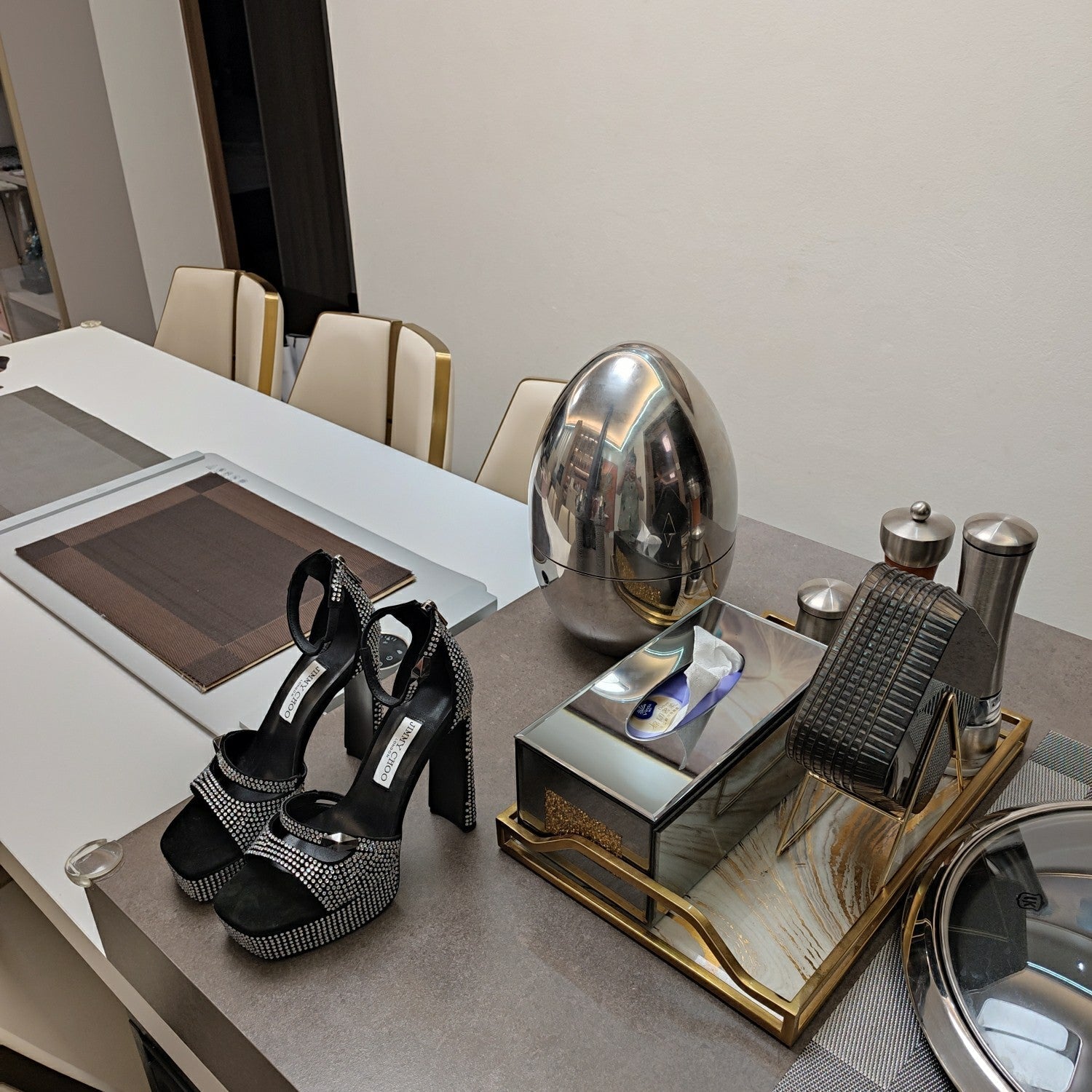 Jimmy 25 Platform Sandal Heels Silver Mirror TPU Material 240008