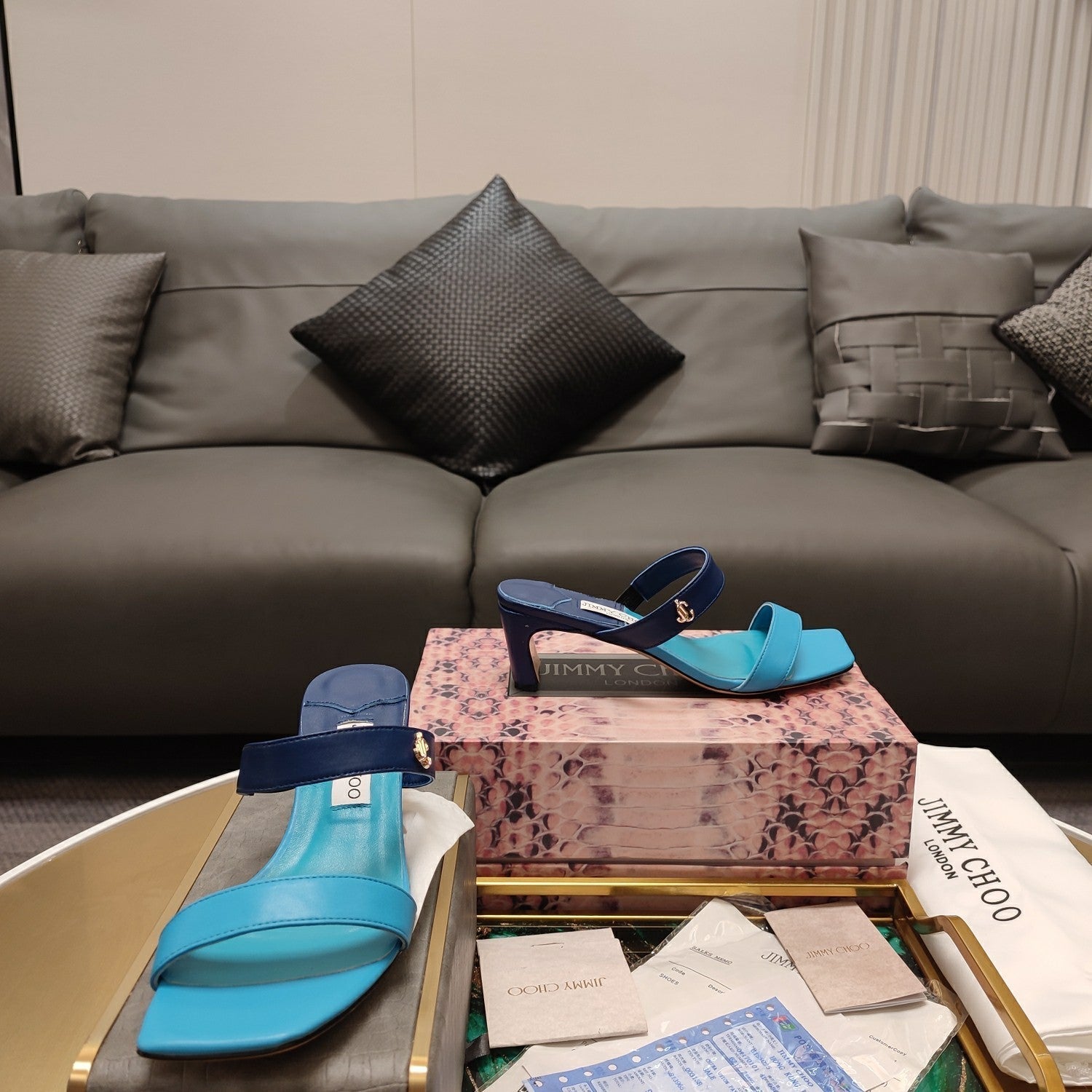 Jimmy 25 Kyda Nappa Sandals 55MM Ncs Blue Leather 240107