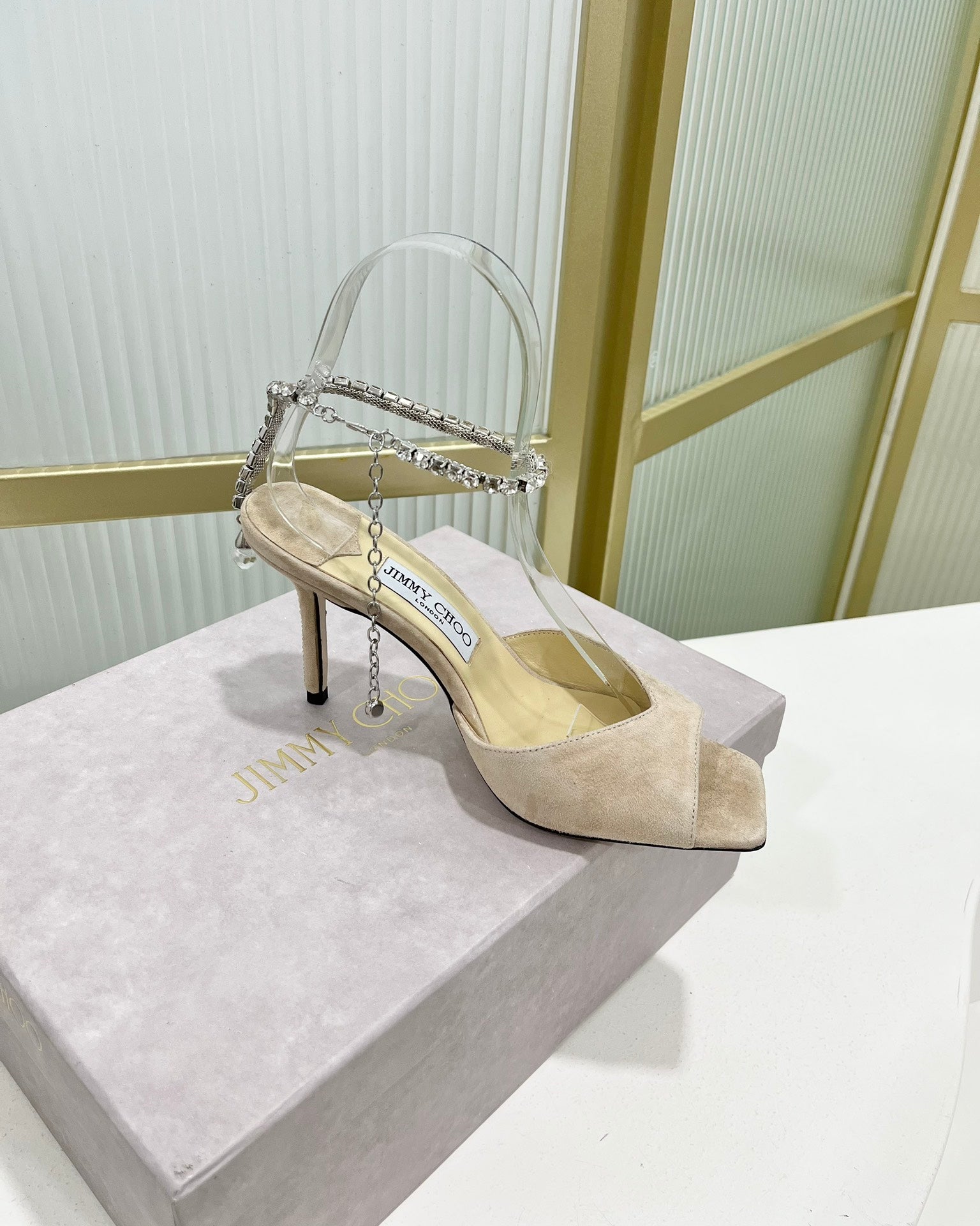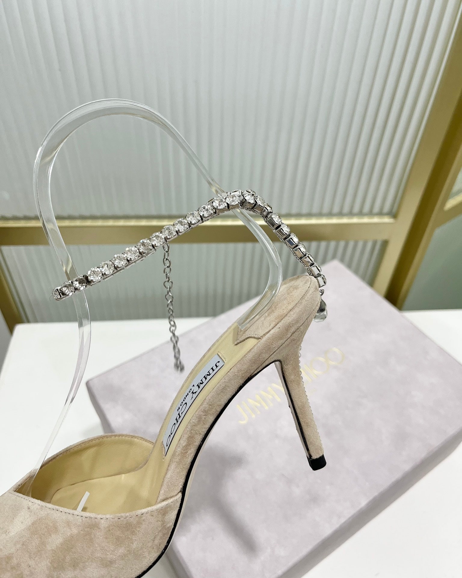 - Material: Suede, Crystal/Lambskin