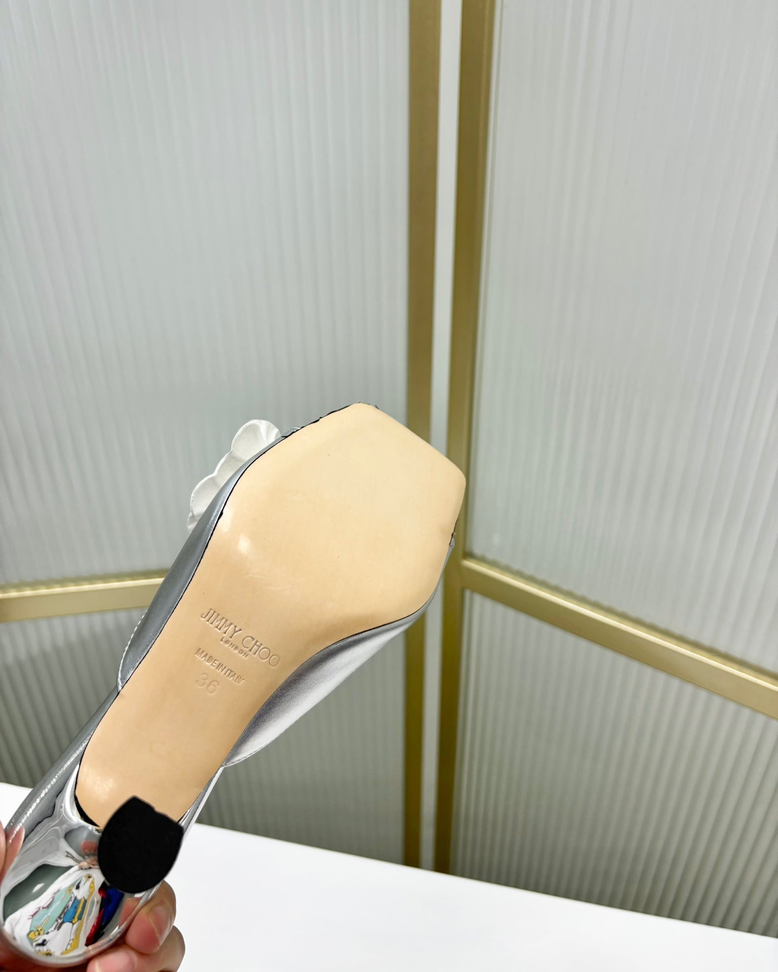Jimmy Skye 65mm In Silver Cowhide Mules 597846