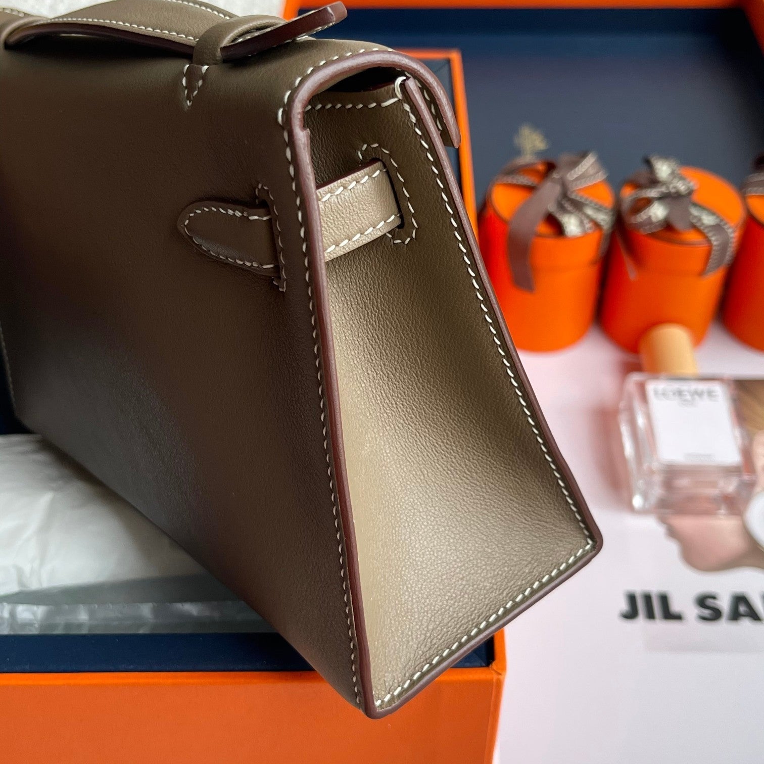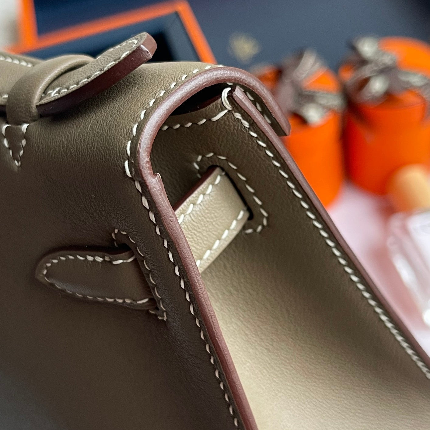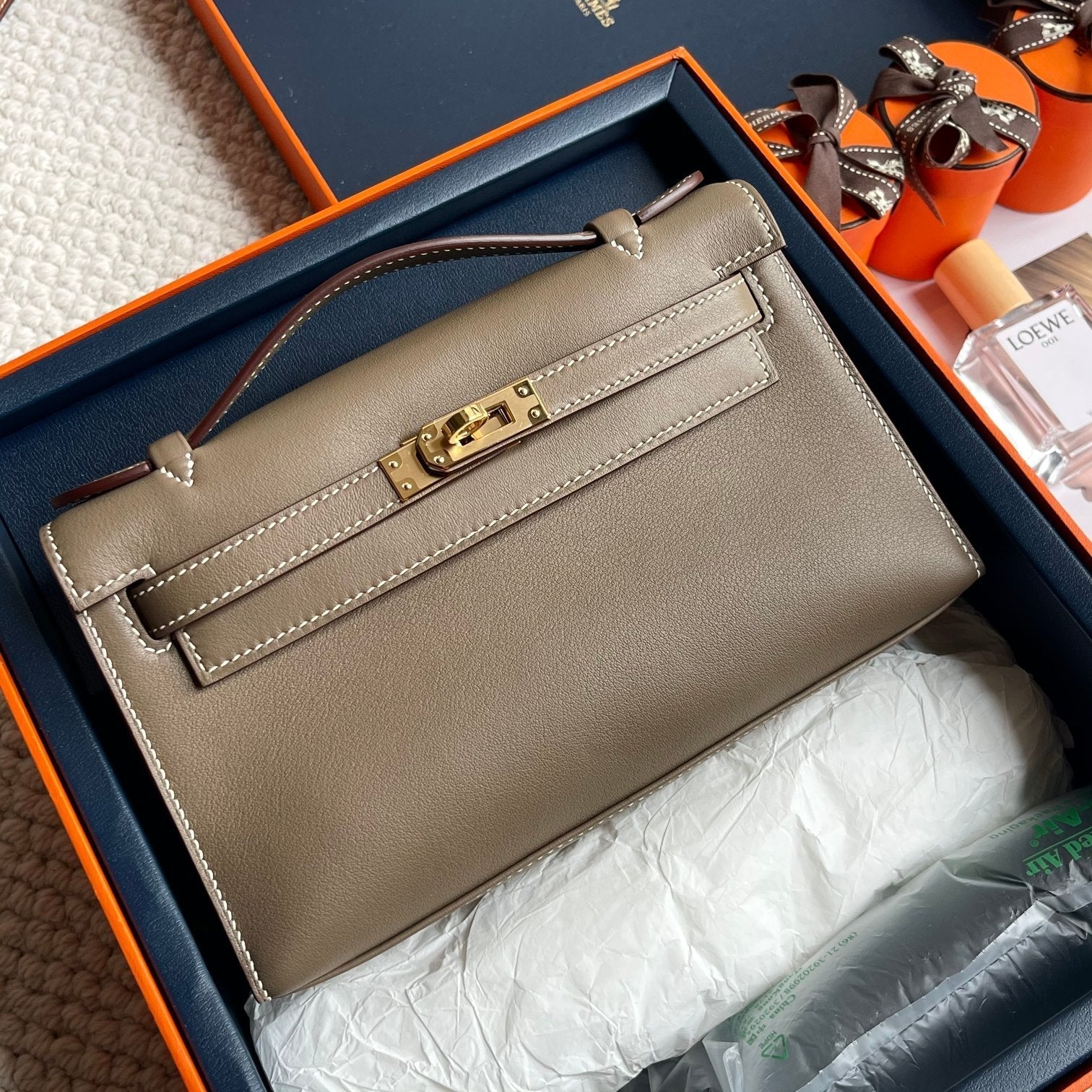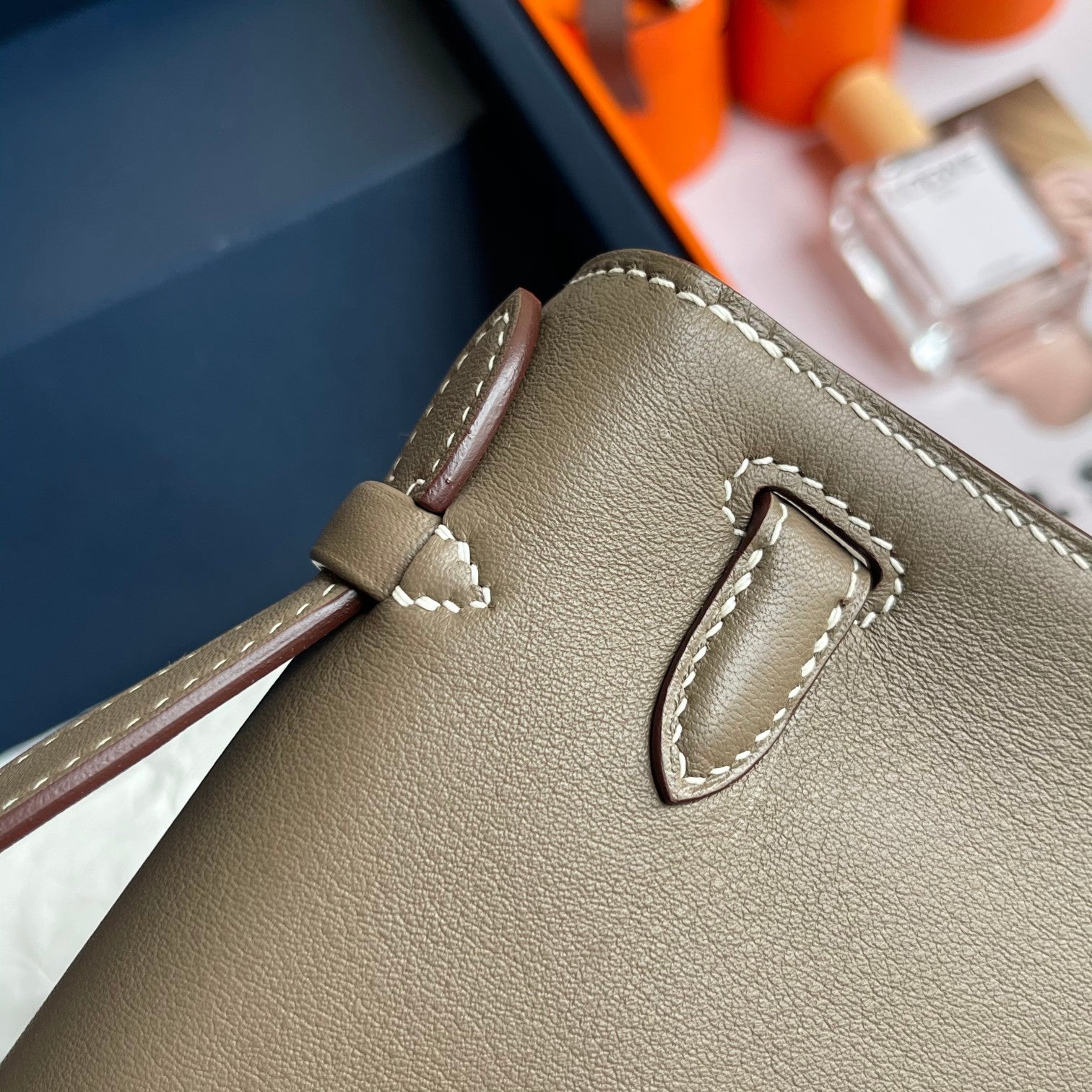 HM Kelly Pochette 22cm Gris Elephant Swift Gold Hardware