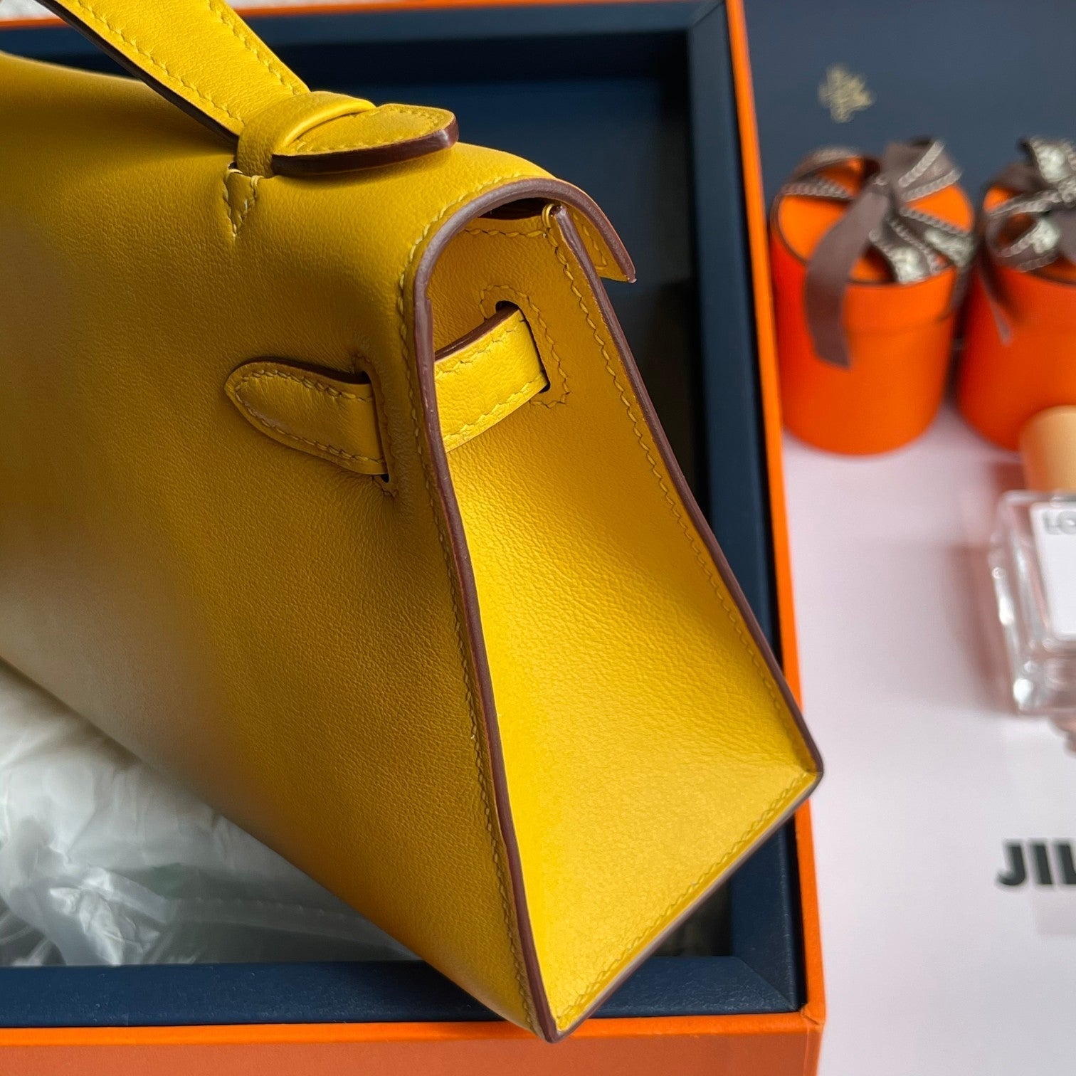 HM Kelly Pochette 22cm Yellow Swift Silver Hardware