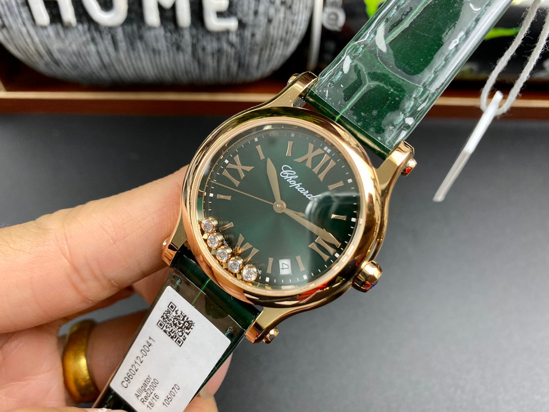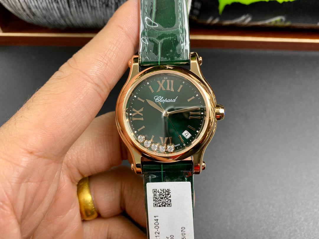 Happy Diamonds 36mm Gold Dark Green Dial