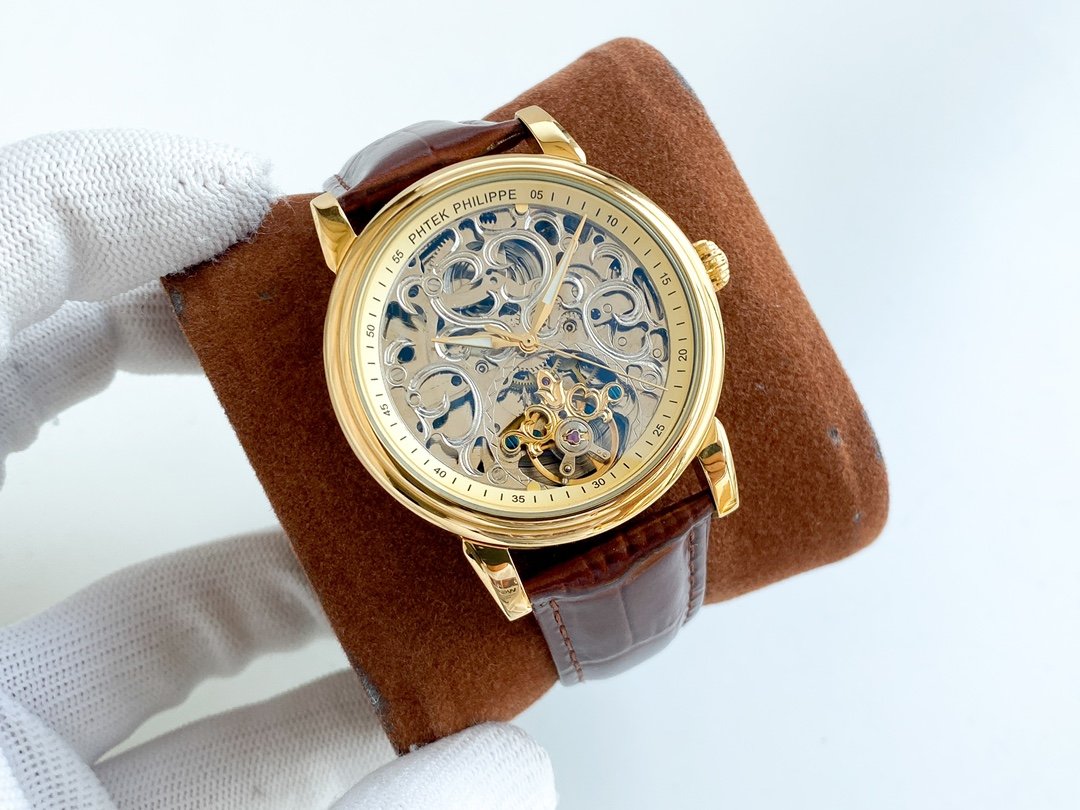 PATEK COMPLICATION GOLD CASE SKELETON DIAL
