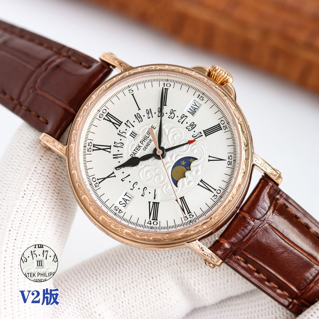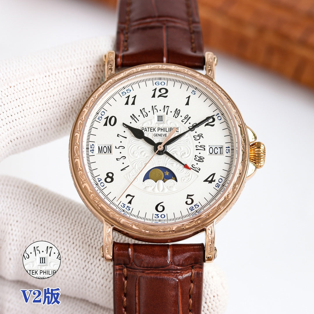 PATEK ANNUAL CALENDAR 42MM MOONPHASE LEATHER STRAP