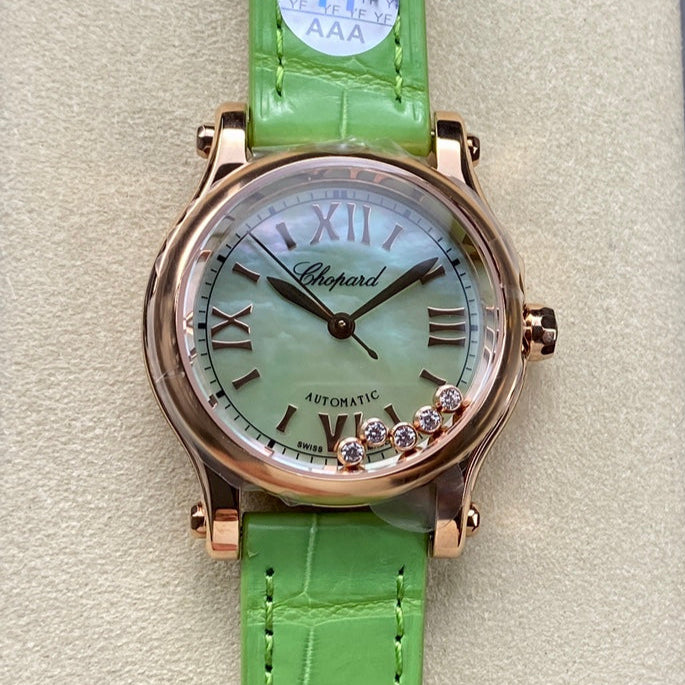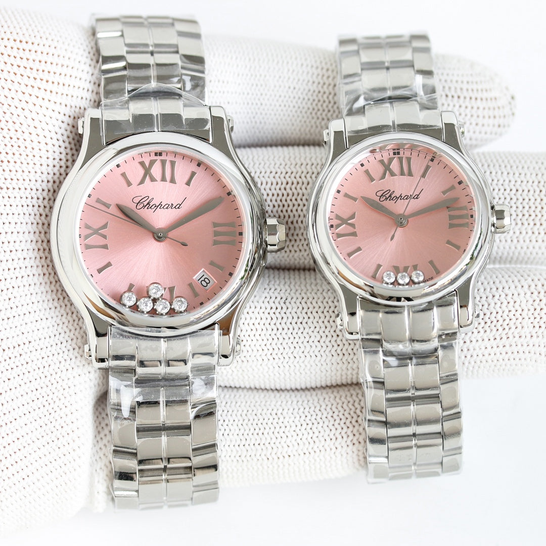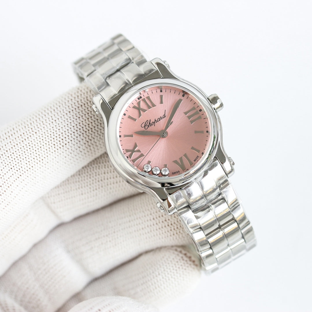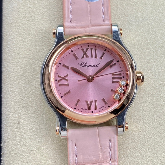 Happy Diamonds 30mm Pink Gold Blue Dial