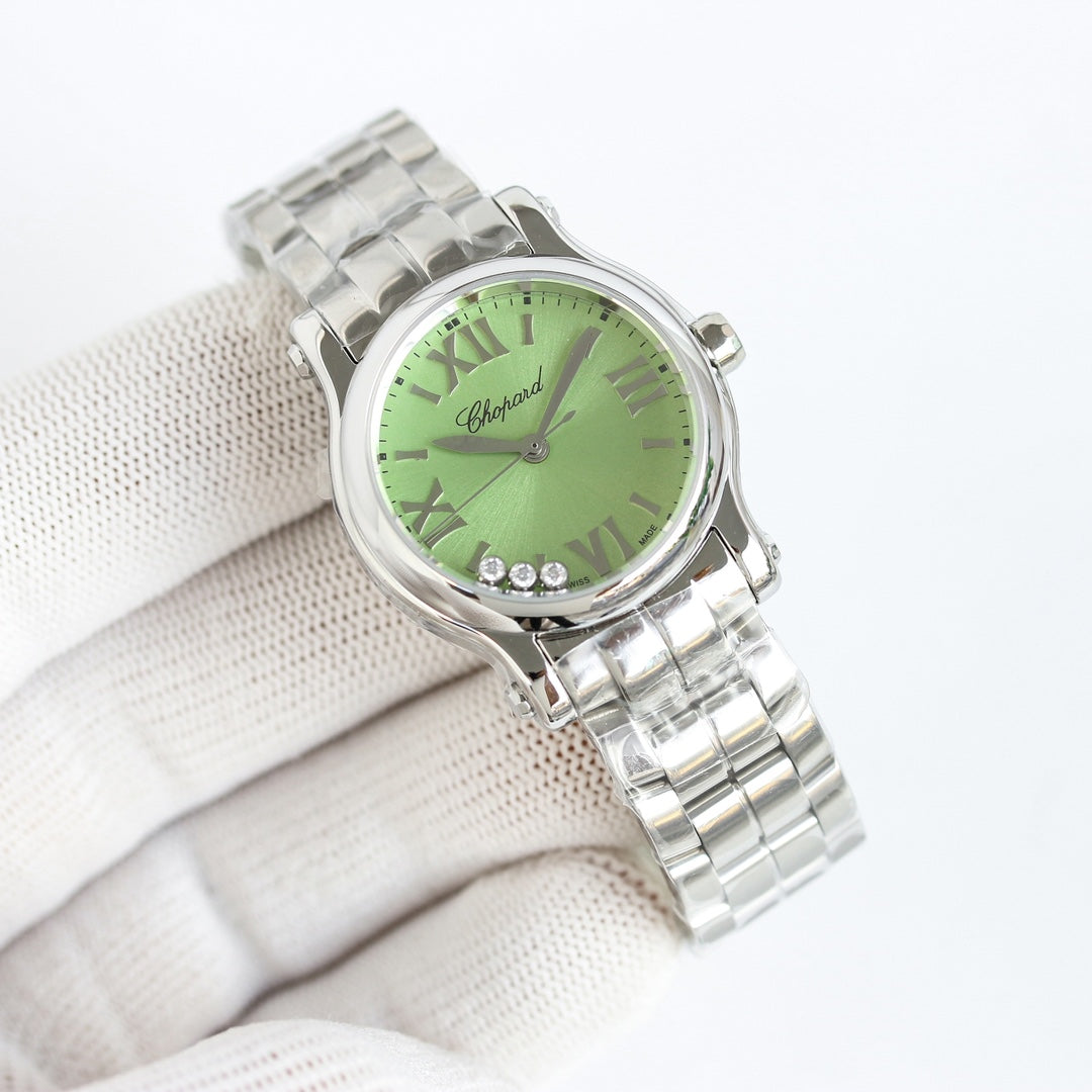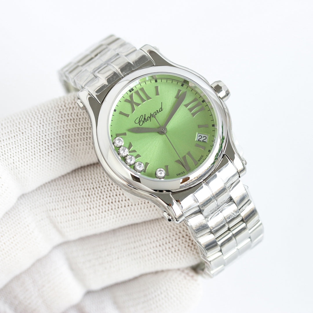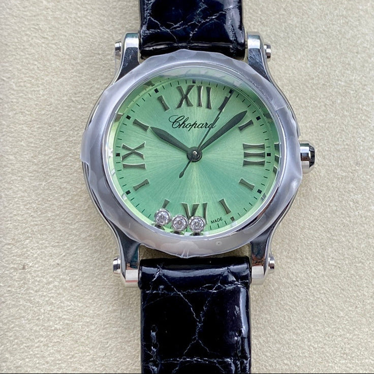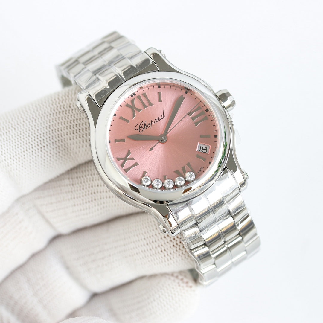 Happy Diamonds 30mm Pink Gold Blue Dial