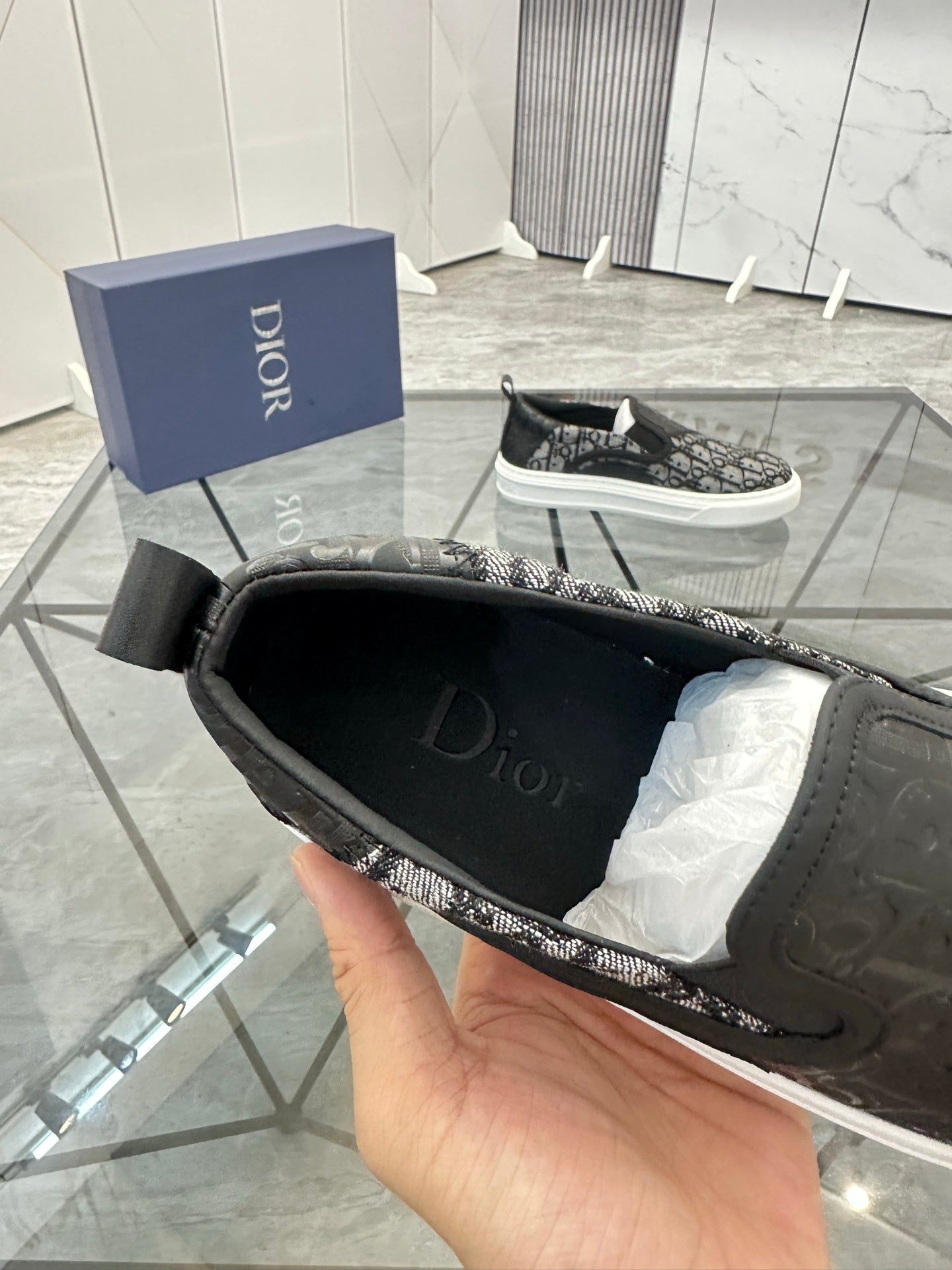 CD Slip on loafer Black Cowhide Fabric 647998