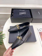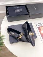 FLAT LOAFERS WITH GOLD CHAIN IN BLACK SMOOTH CALFSKIN