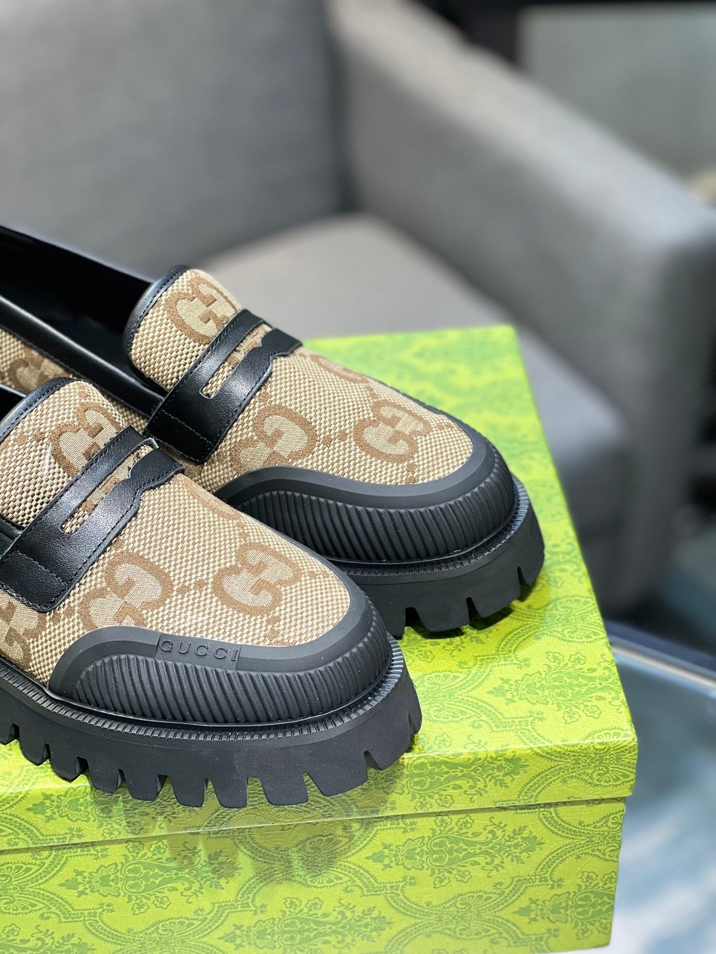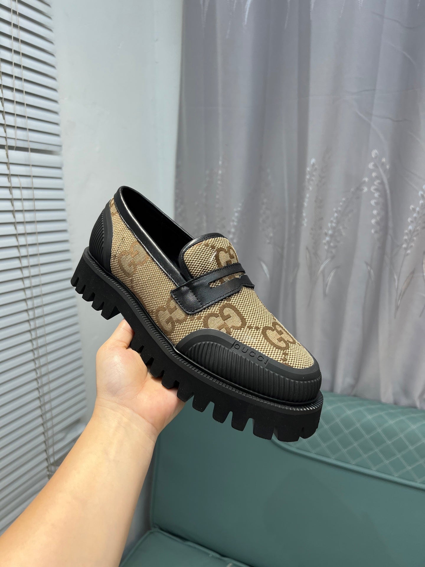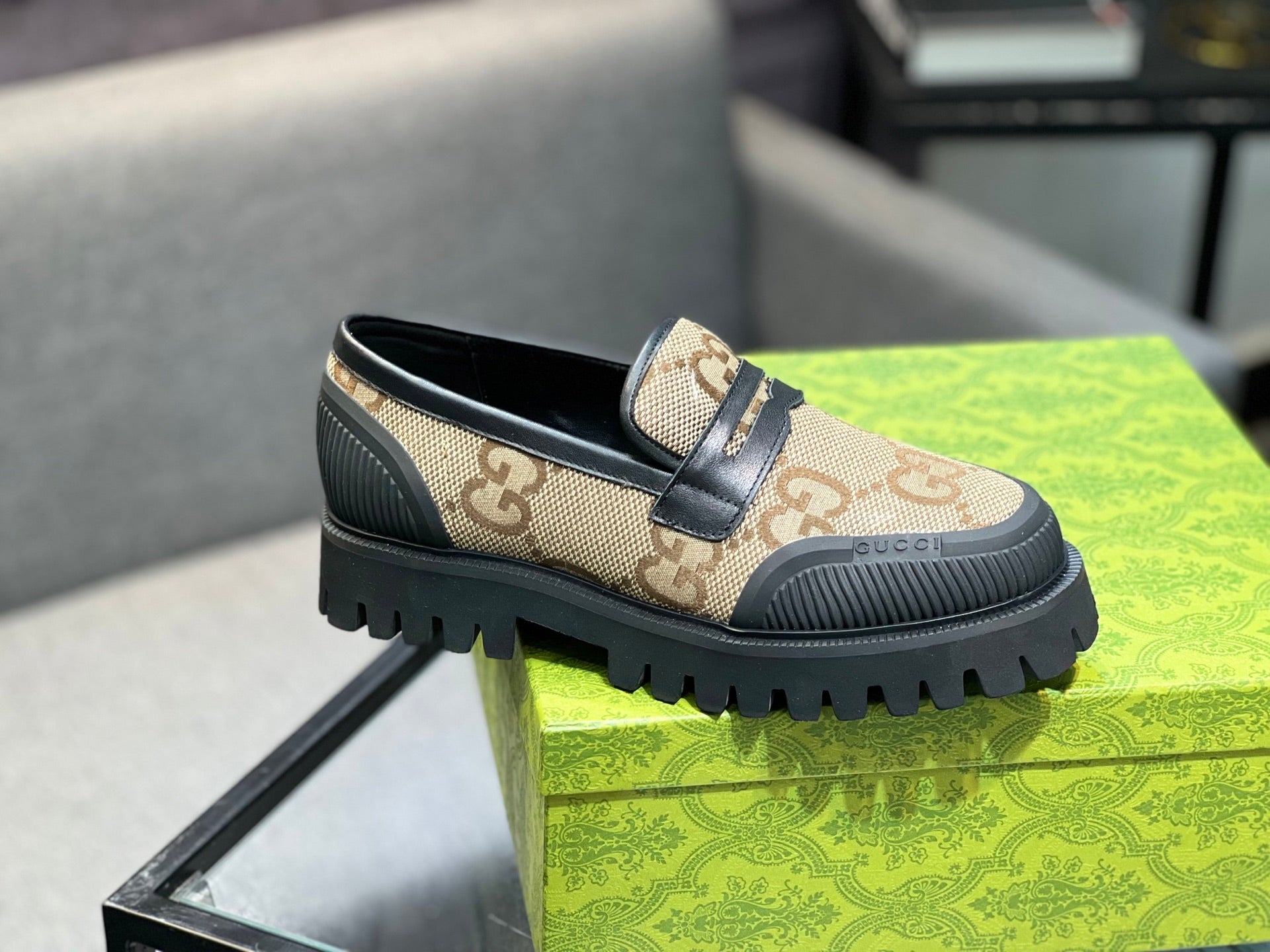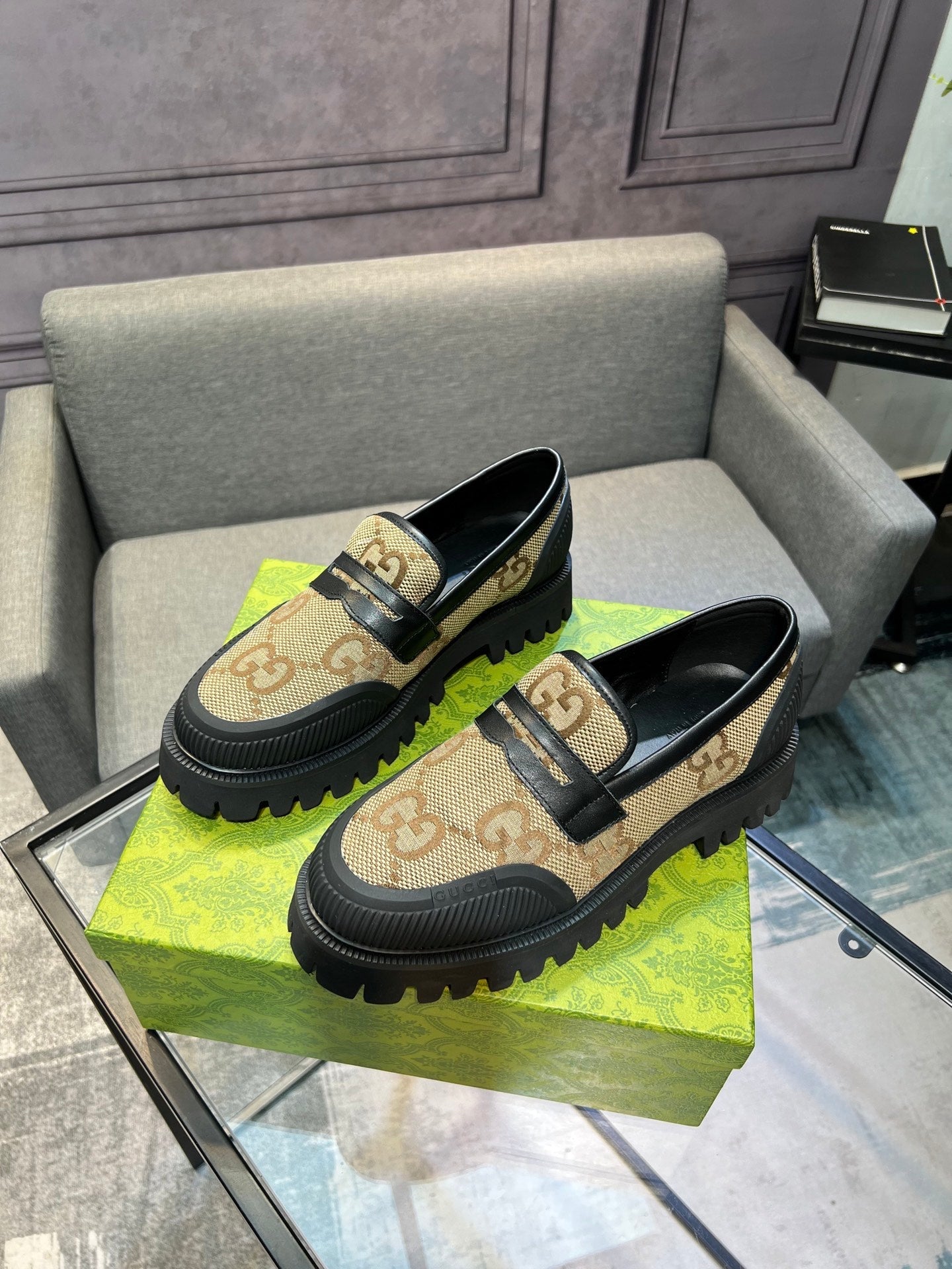GG Men's 25 Maxi GG Loafer Brown Black Canvas 720786