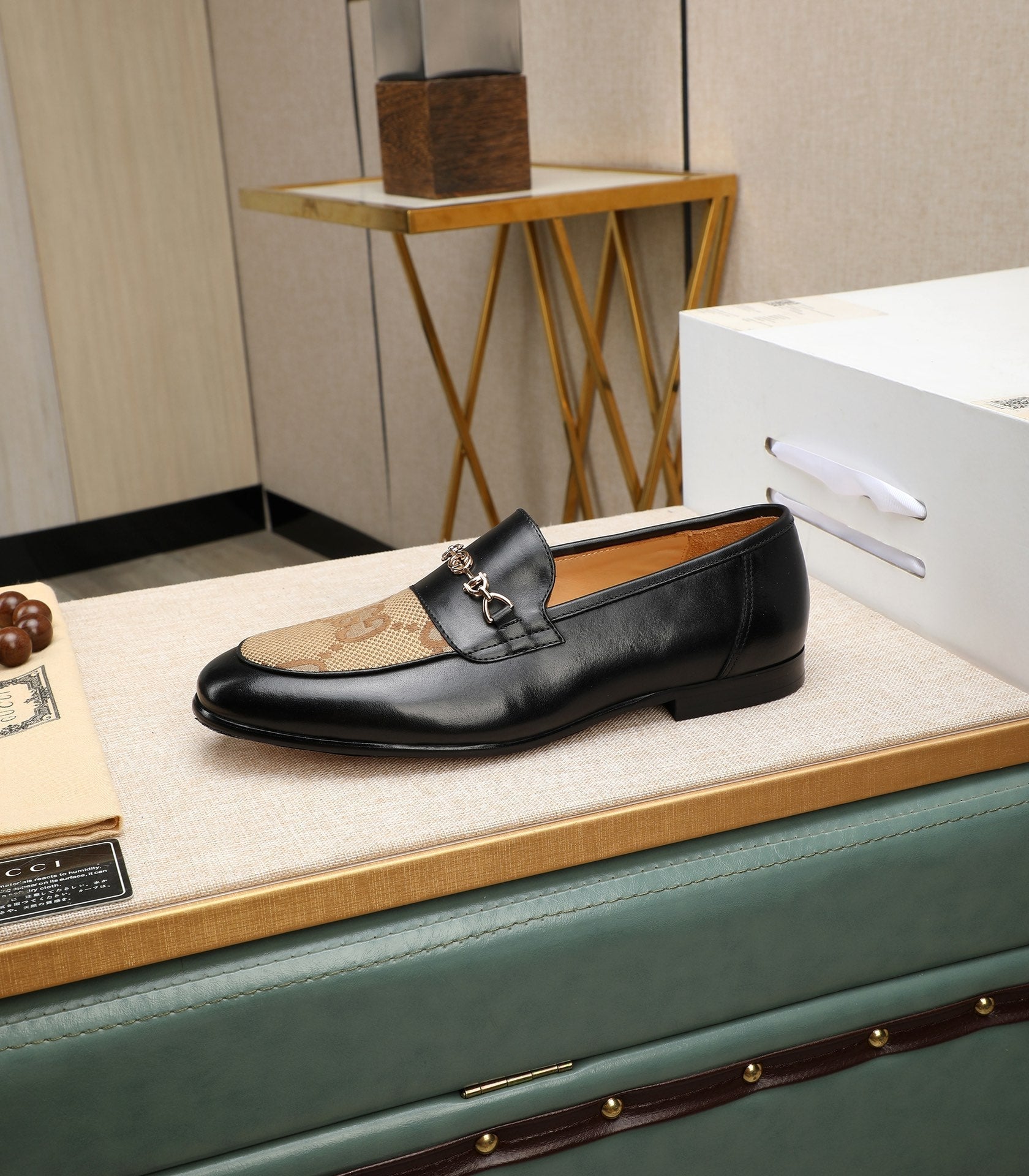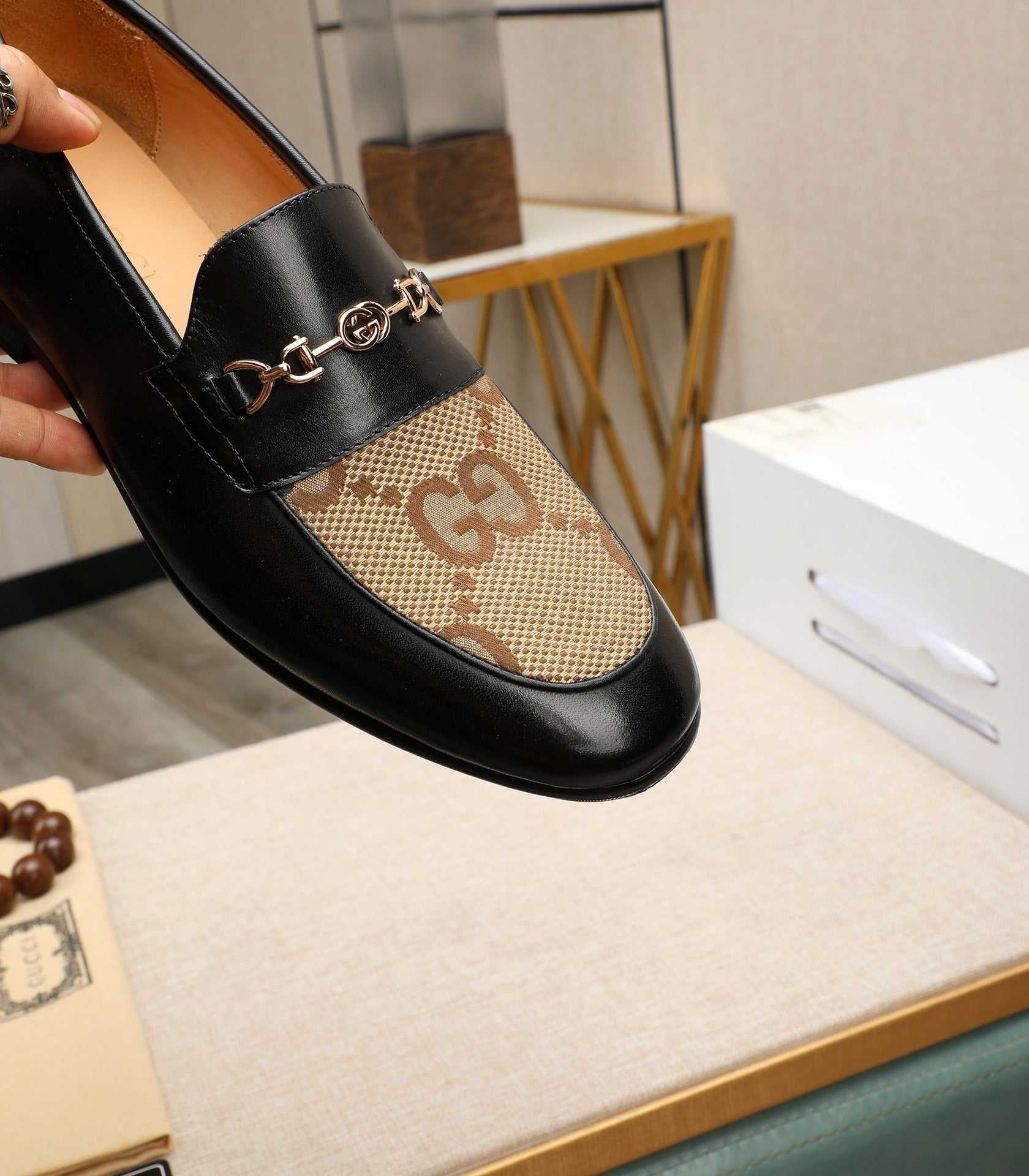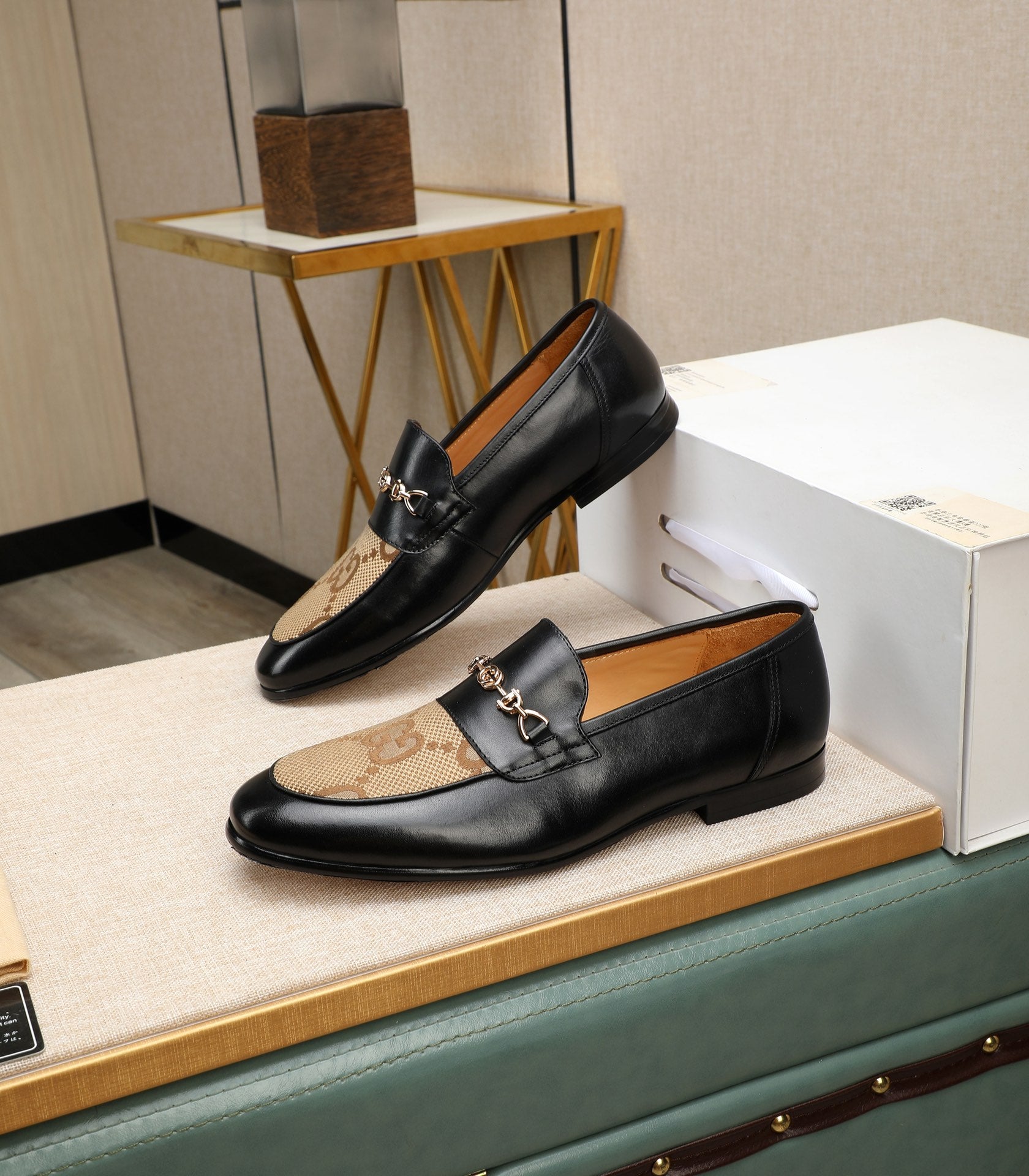 GG Men's Loafer Black Brown Cowhide Canvas 526012
