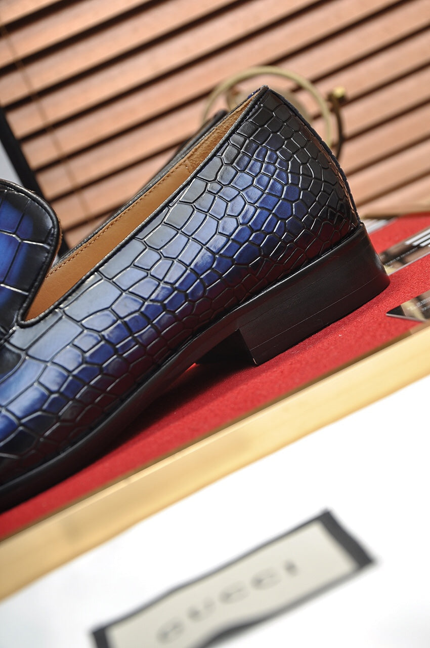 GG Men's Loafer Blue mix Black Embossed Cowhide 295649