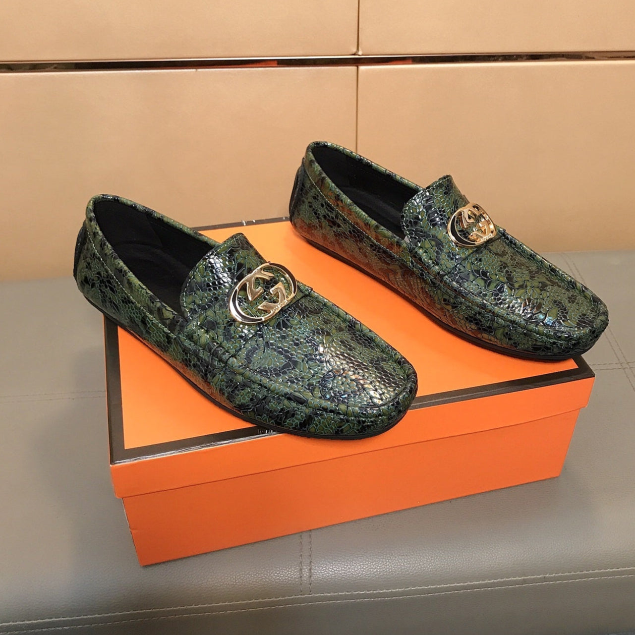 GG Men's Loafer Green Mix Black Embossed Cowhide 748039