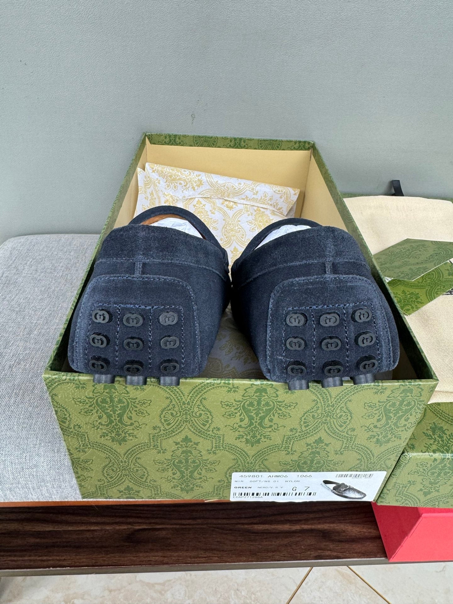 GG Men's Loafer Navy Blue Embossed Suede 555384