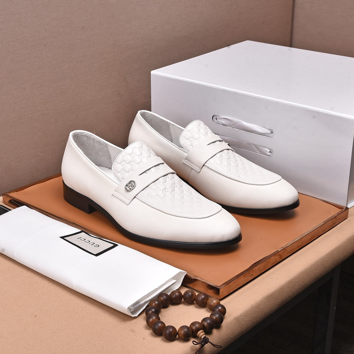 GG Men's Loafer White Embossed Cowhide 538718