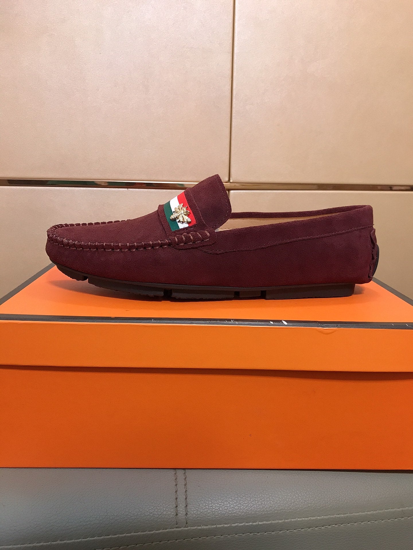 GG Men's Loafer Wine Red Suede 526675