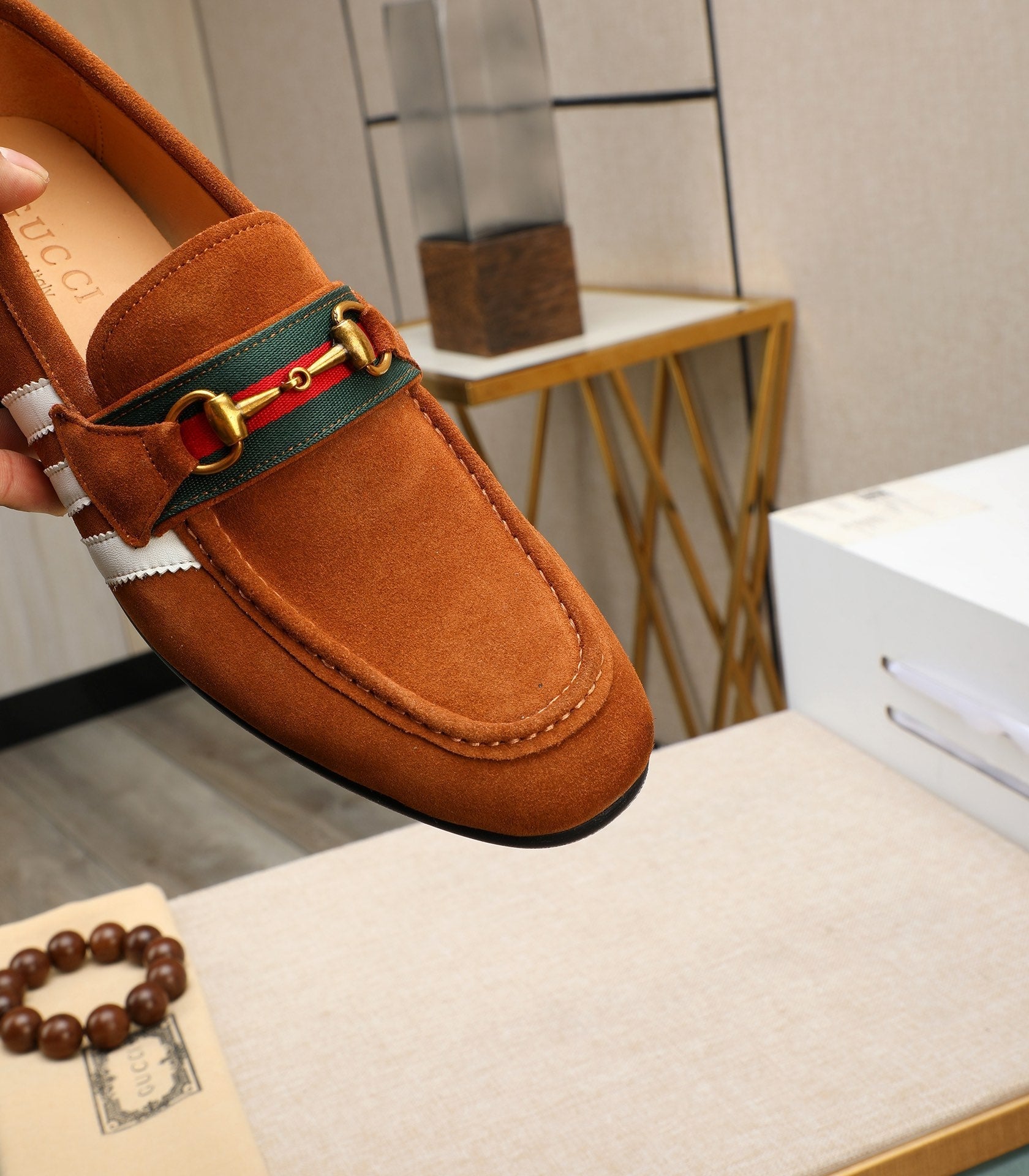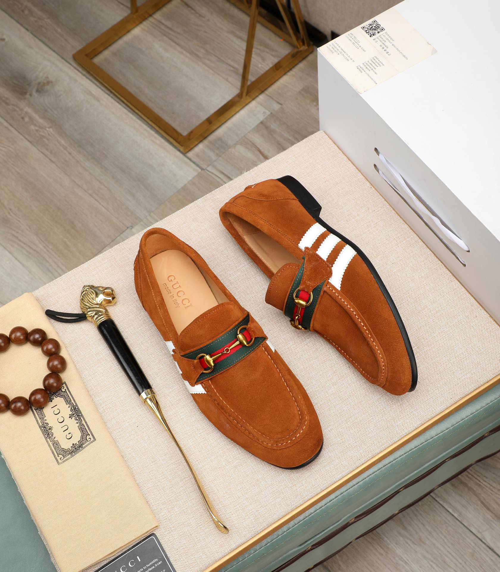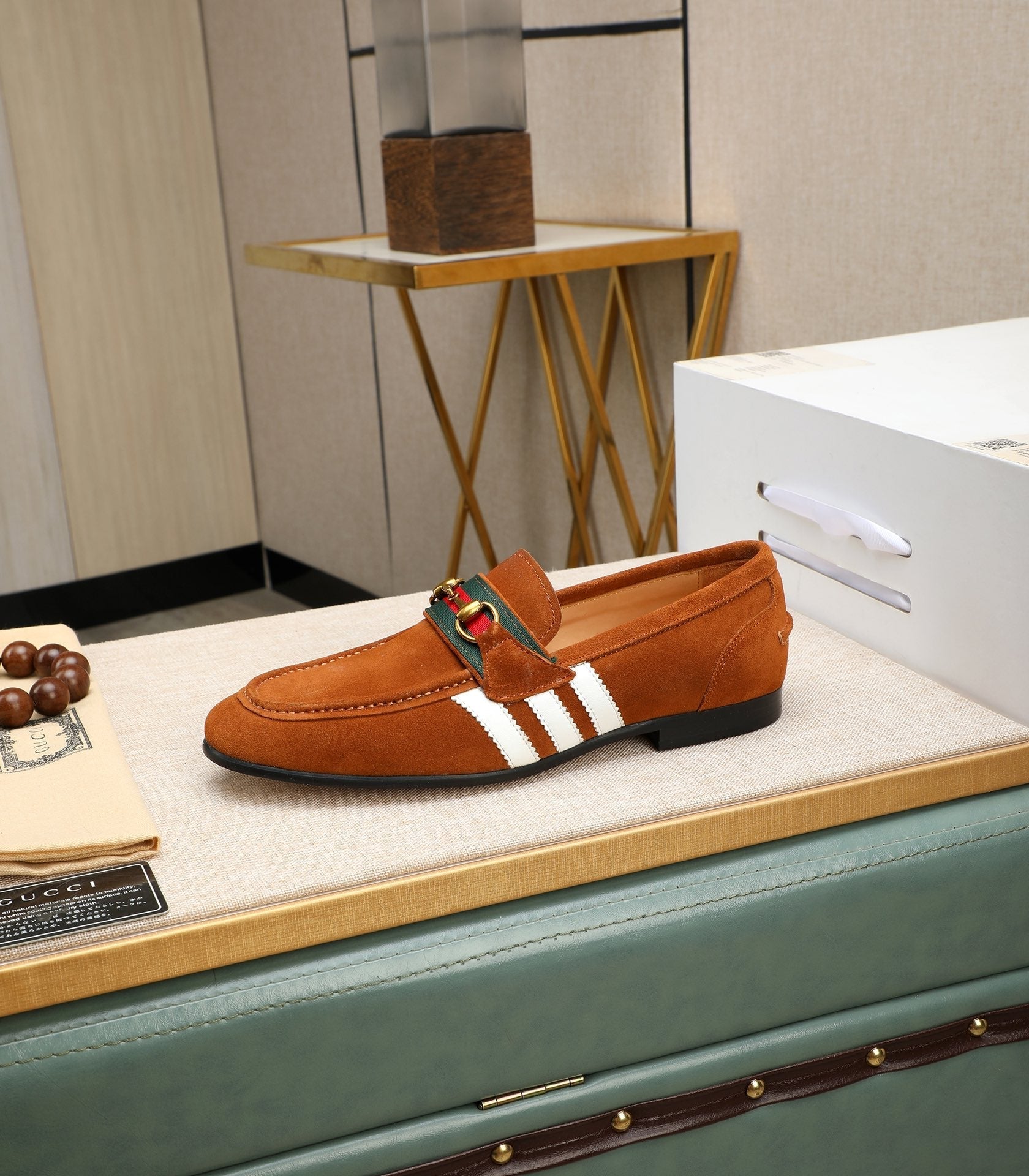 GG x Adidas Men's Jordaan Loafer Light Brown Suede 456614