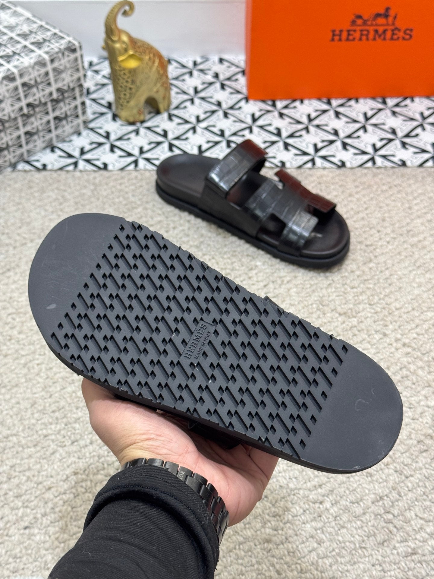 HM Men's Chypre Slide Black Cowhide 542930
