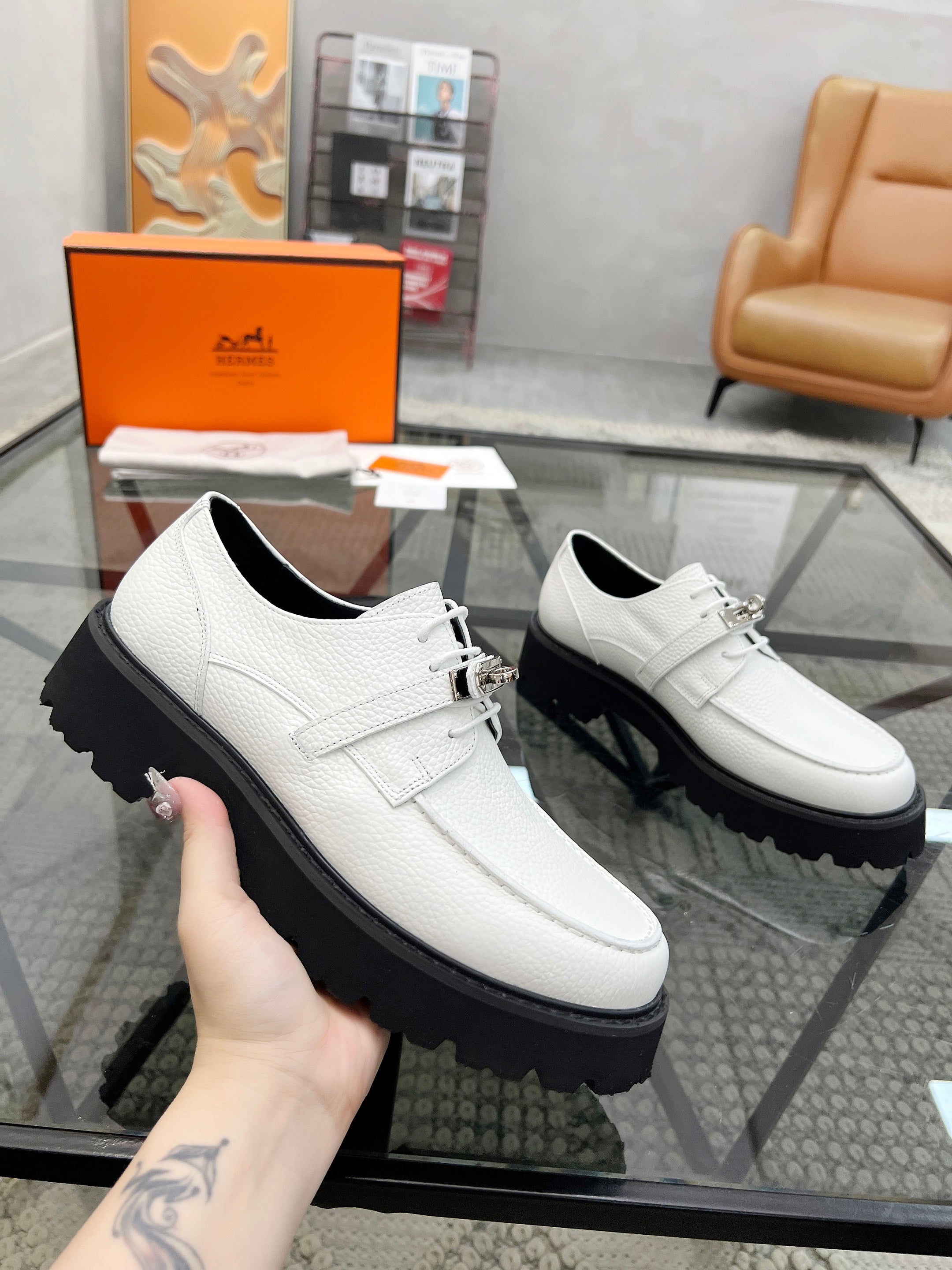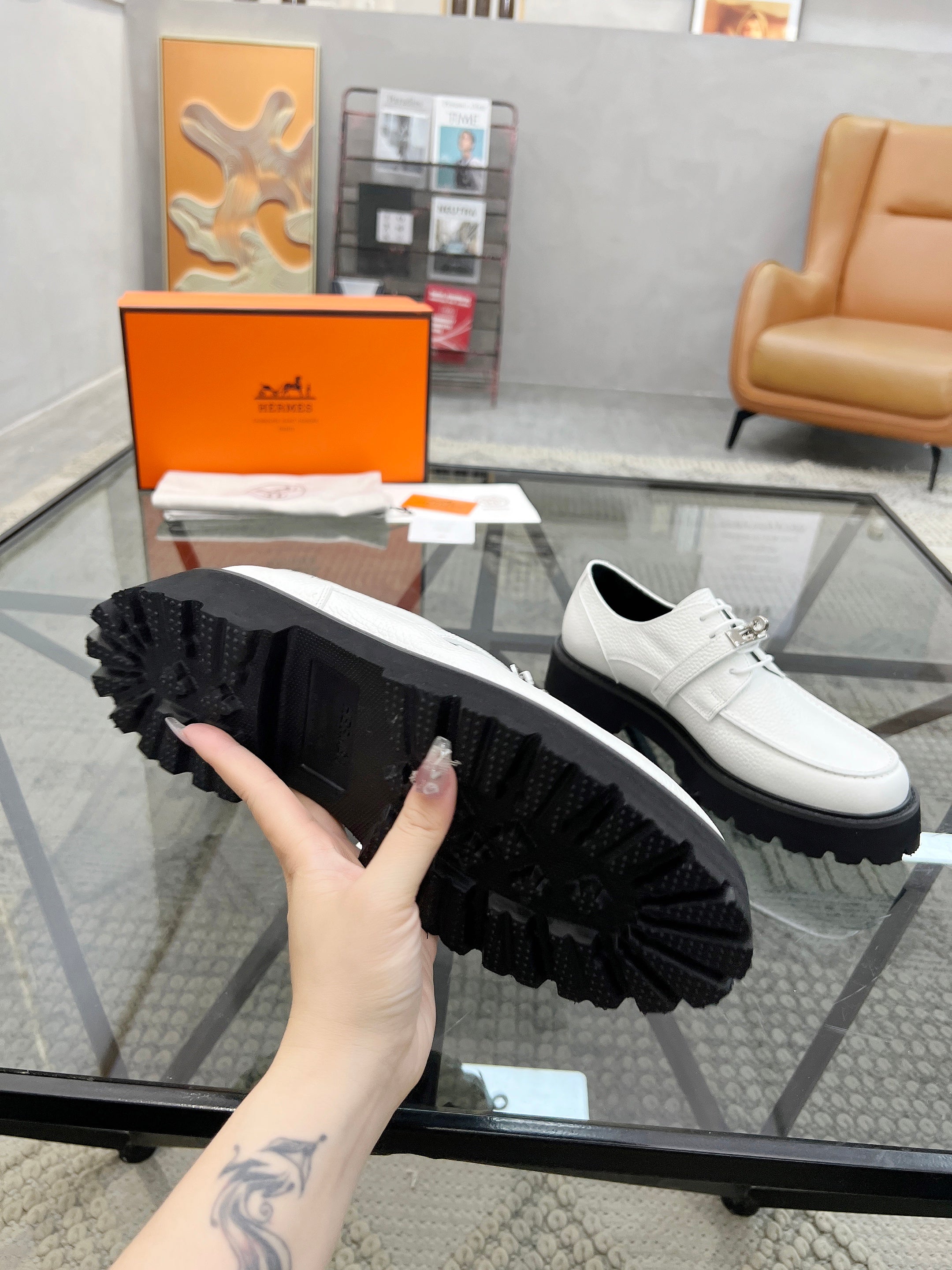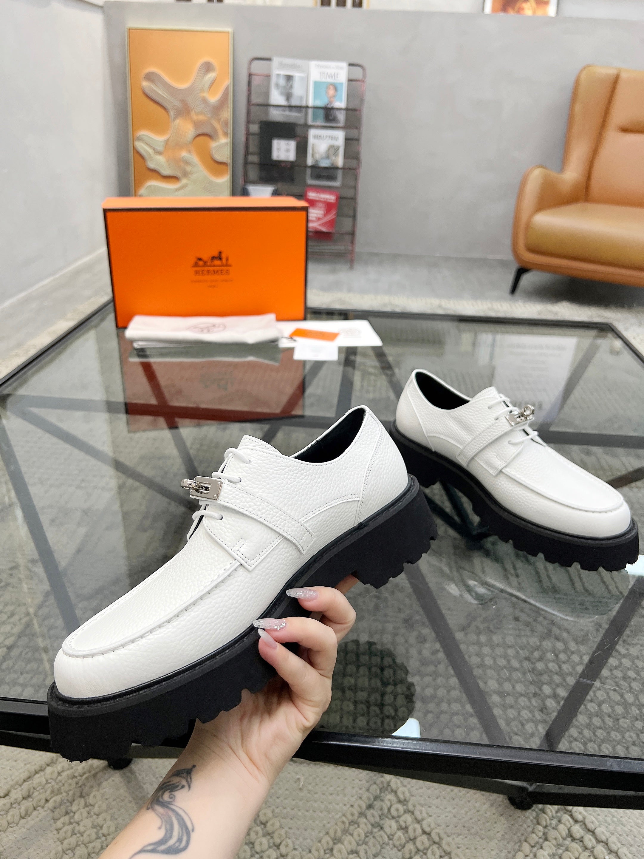 HM Men's First oxford Loafer White Cowhide 590525