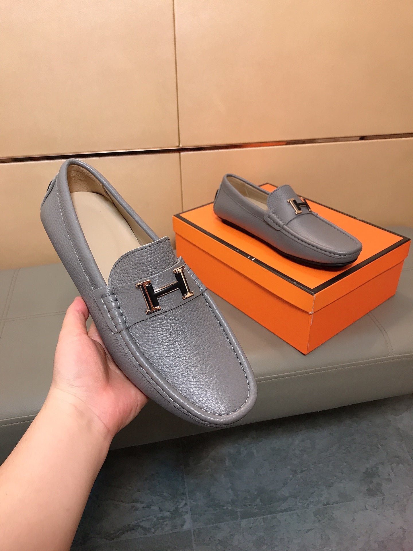 HM Men's Loafer Grey Cowhide 523199