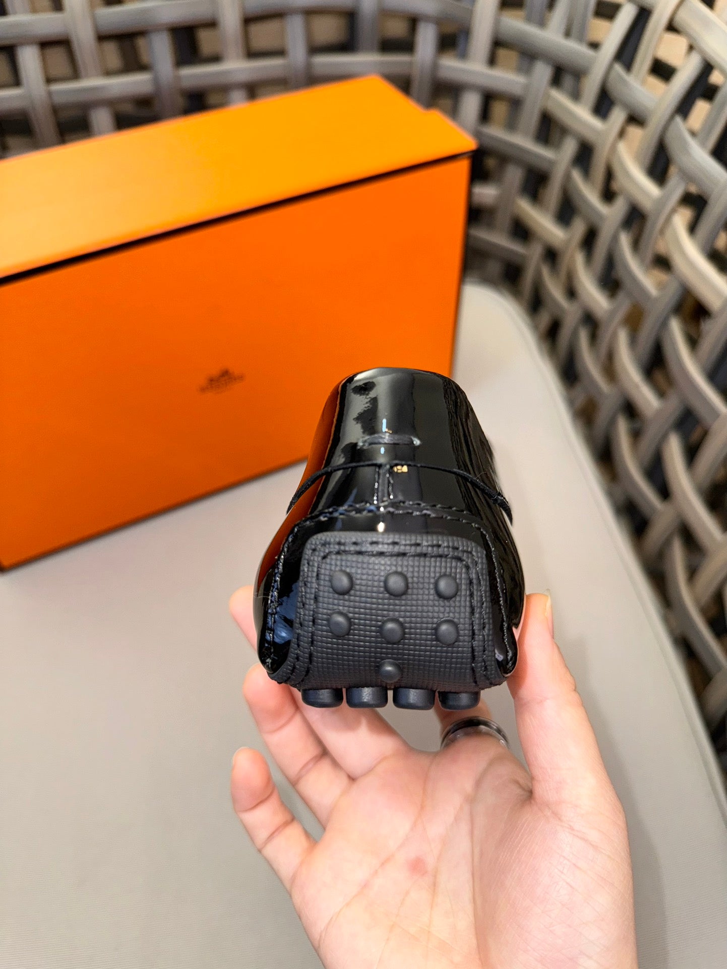 HM Men's Moccasins Loafer Black Patent Leather 537532