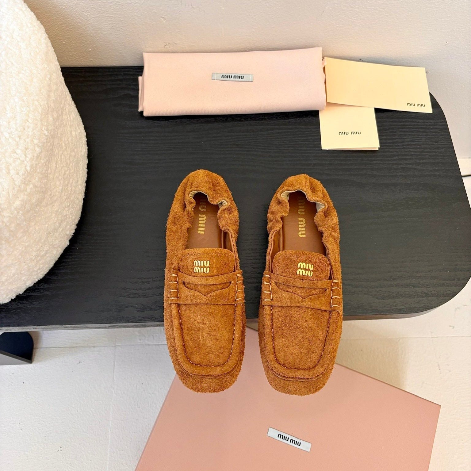Miu 25C Ruches nappa Loafers Copper Brown Suede 235807
