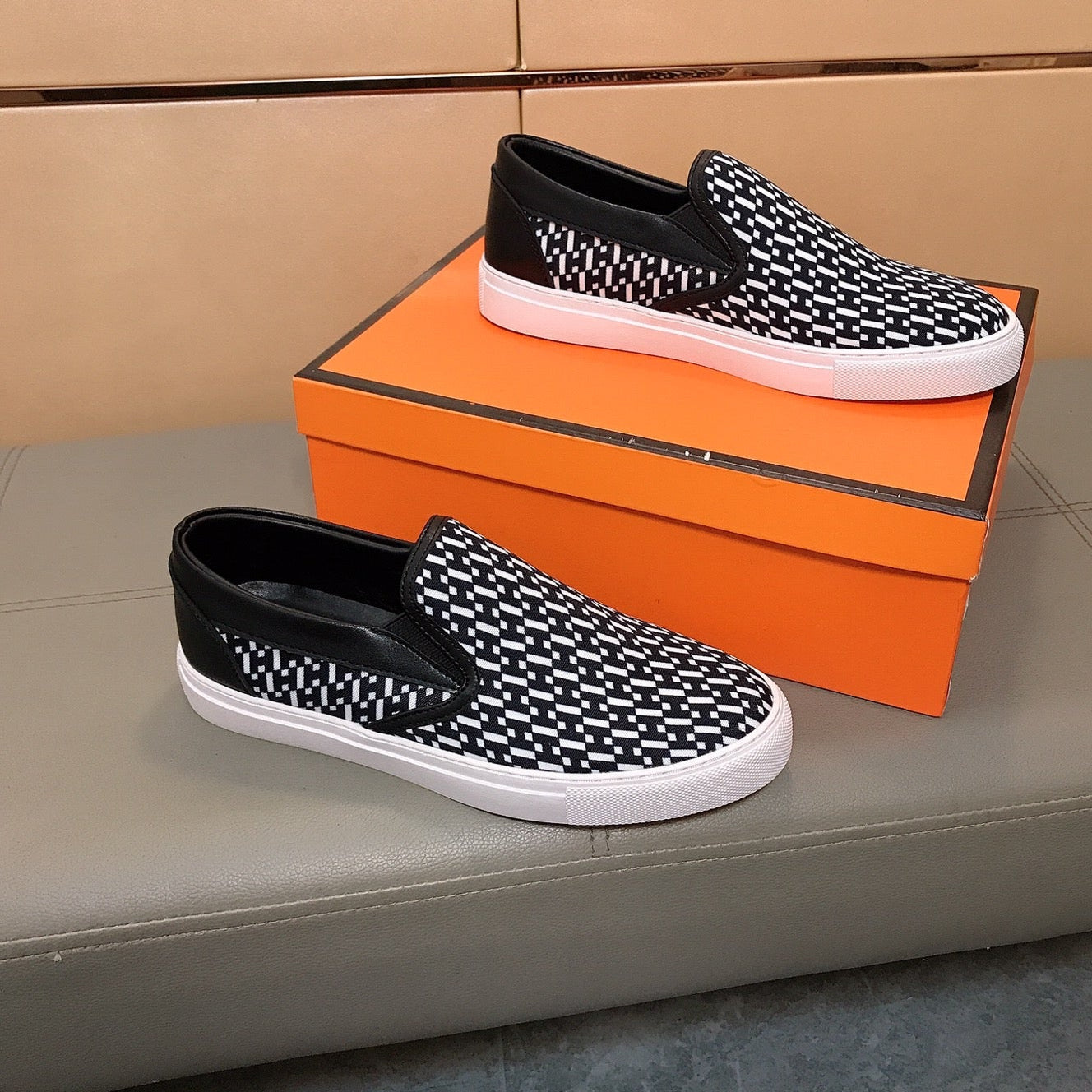 HM Men's Loafer White Black Printed Fabrics Rubber 590008