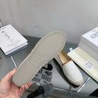 Loew Anagram Espadrille White Brown Leather and Canvas