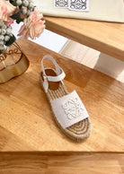 Loew Anagram White Beige Leather And Canvas Espadrille Sandals