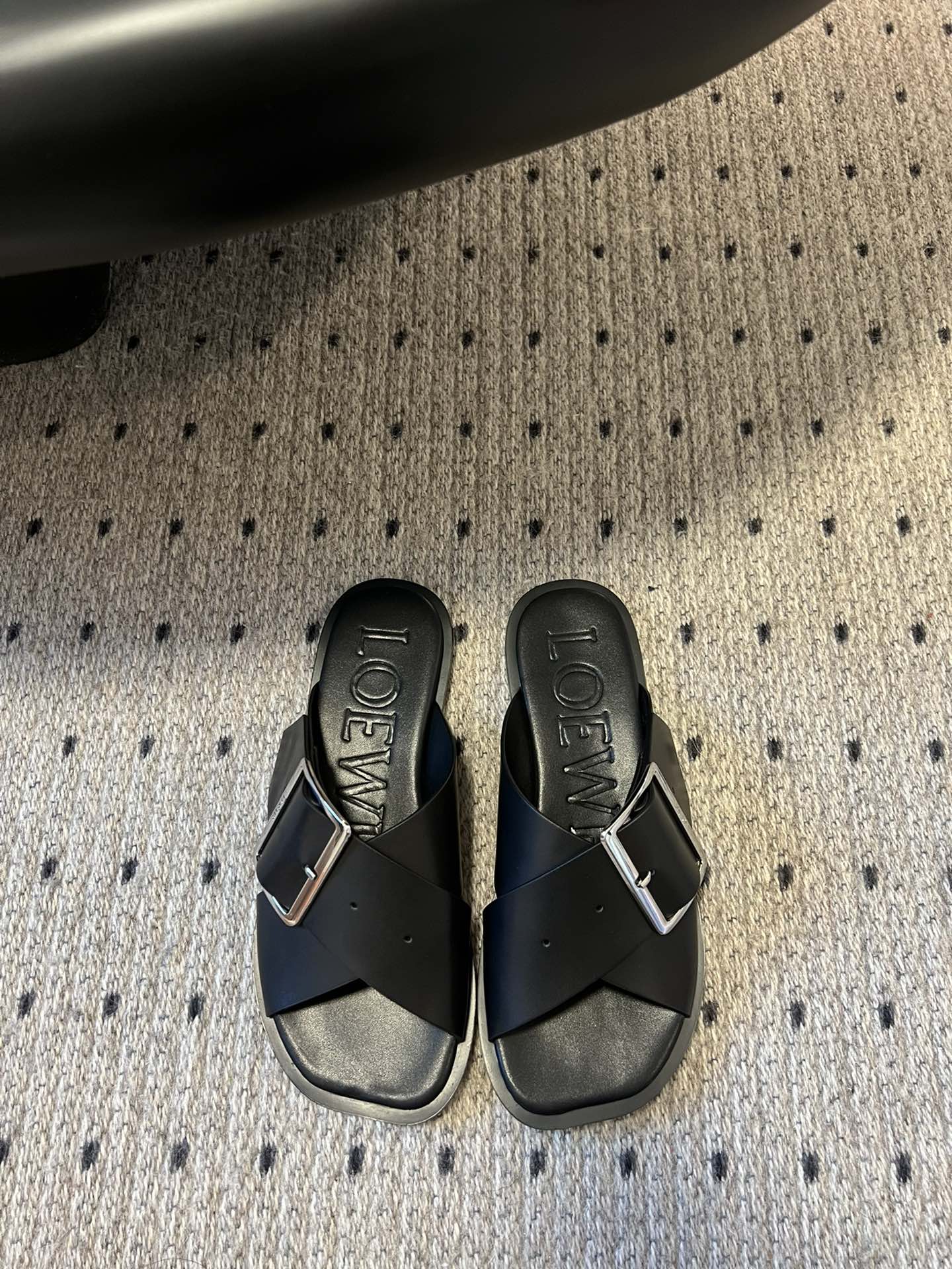 Loewe 25 Petal Belt Flat Sandals Black Sheepskin
