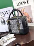 LOE AMAZONA 19 BAG IN BLACK CALFSKIN AND MONOGRAM JACQUARD