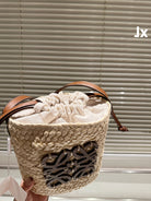 LOE ANAGRAM MINI 18 BUCKET BAG IN NATURAL RAFFIA
