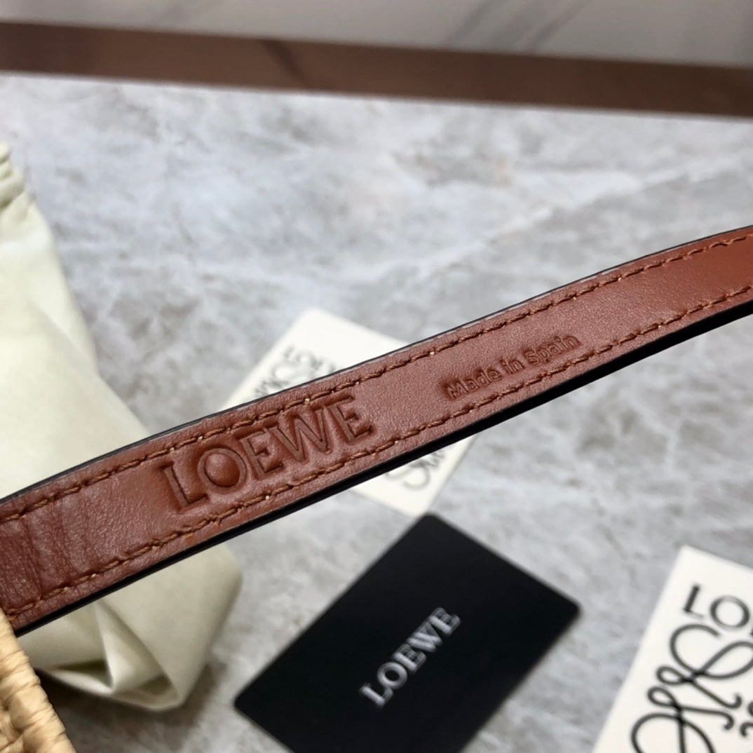 LOE SQUARE BASKET BAG 28 IN NATURAL RAFFIA AND CHOCOLATE BROWN CALFSKIN